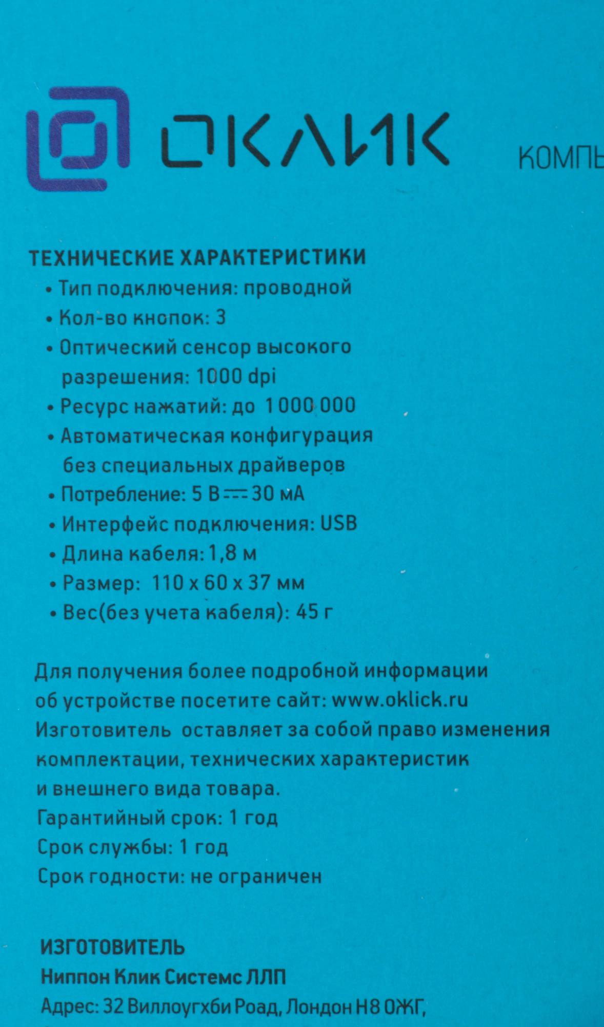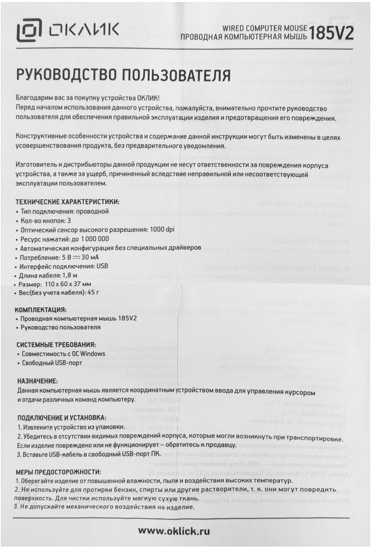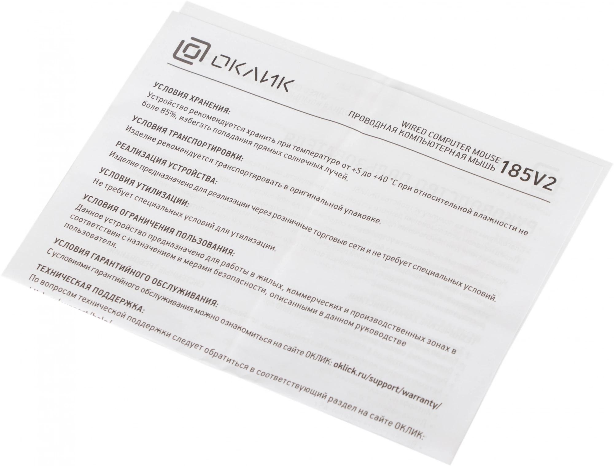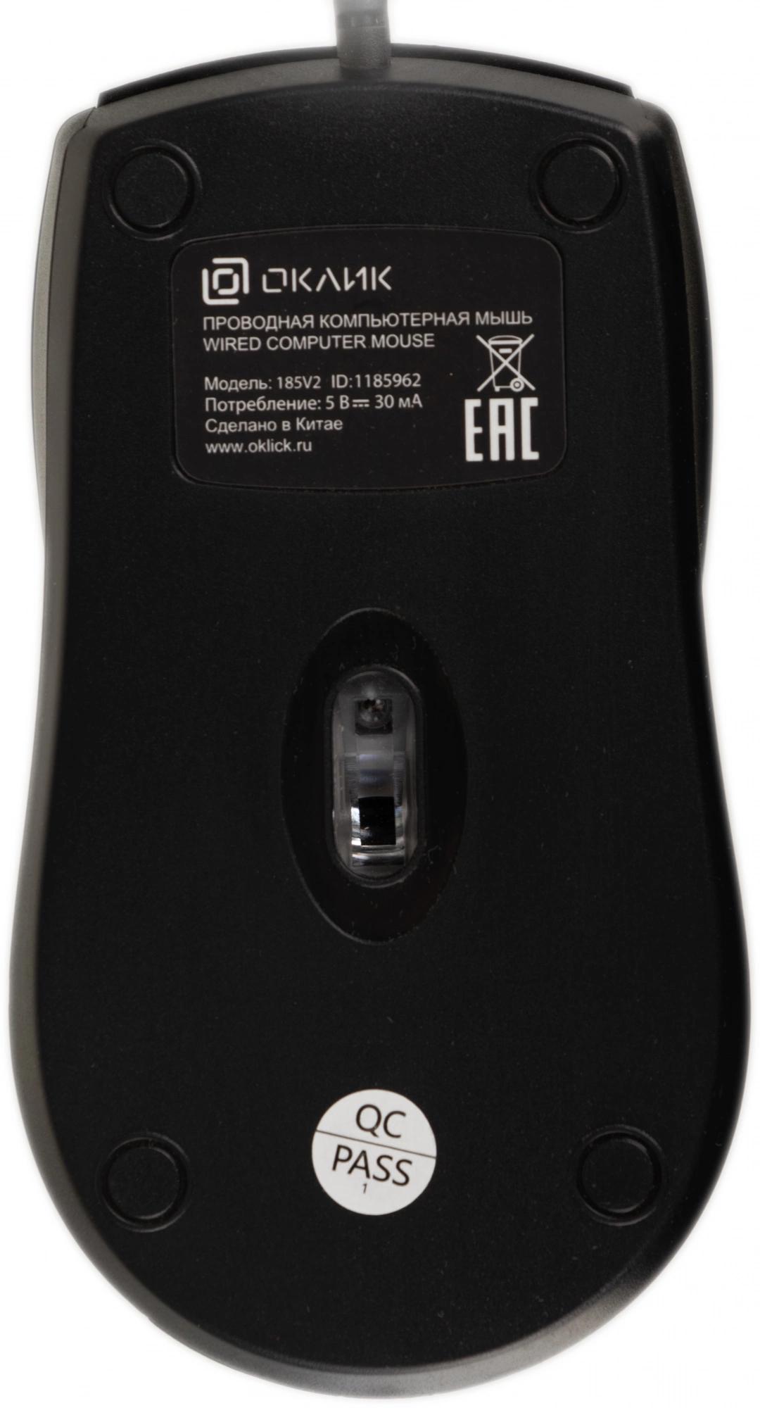 Мышь Оклик 185V2 черный оптическая 1200dpi USB для ноутбука 3but (1185962)