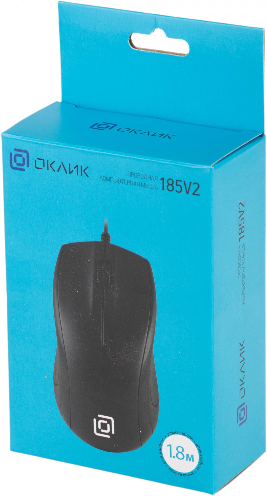 Мышь Оклик 185V2 черный оптическая 1200dpi USB для ноутбука 3but (1185962)