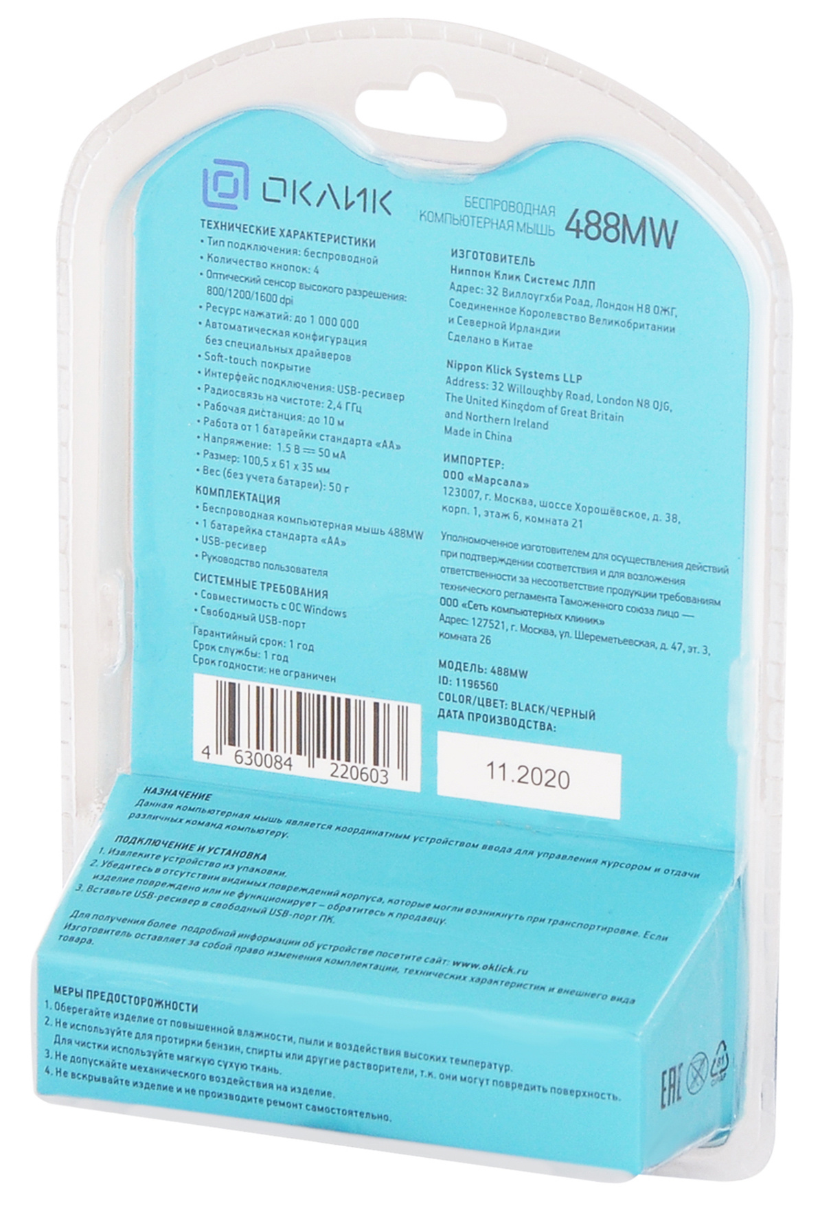 Беспроводная компьютерная мышь 488MW1 батарейка стандарта «АА»USB-ресивер