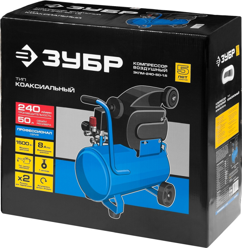 Механический клапан сброса давления. Шумозащитный пластиковый кожух. Эргономичная ручка и колеса для удобства транспортировки. Возможность подсоединения дополнительного ресивера или штуцера. Контроль давления в ресивере и на выходе при помощи двух манометров.