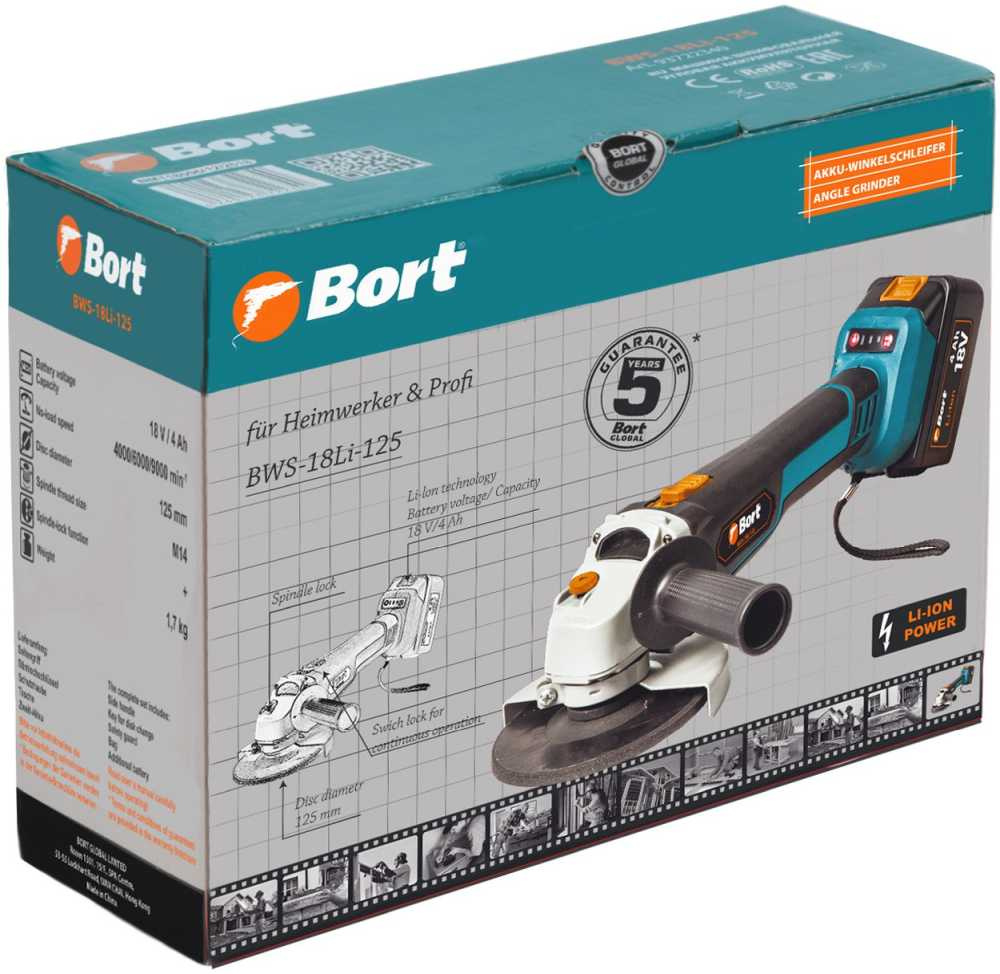 Рукоятка боковая (1 шт)Ключ для смены диска (1 шт)Защитный кожух (1 шт)Сумка (1 шт)Дополнительная батарея (1 шт)Быстро-зарядное устройство (1 шт)