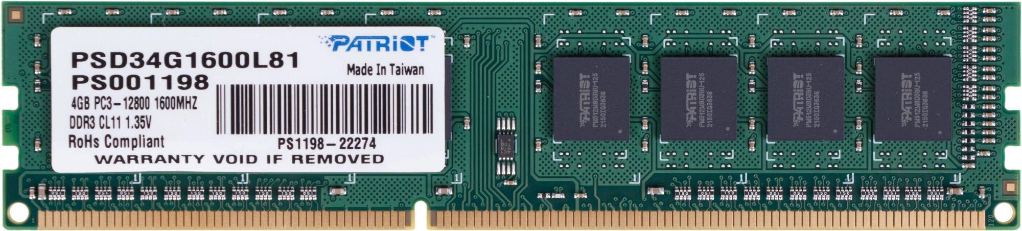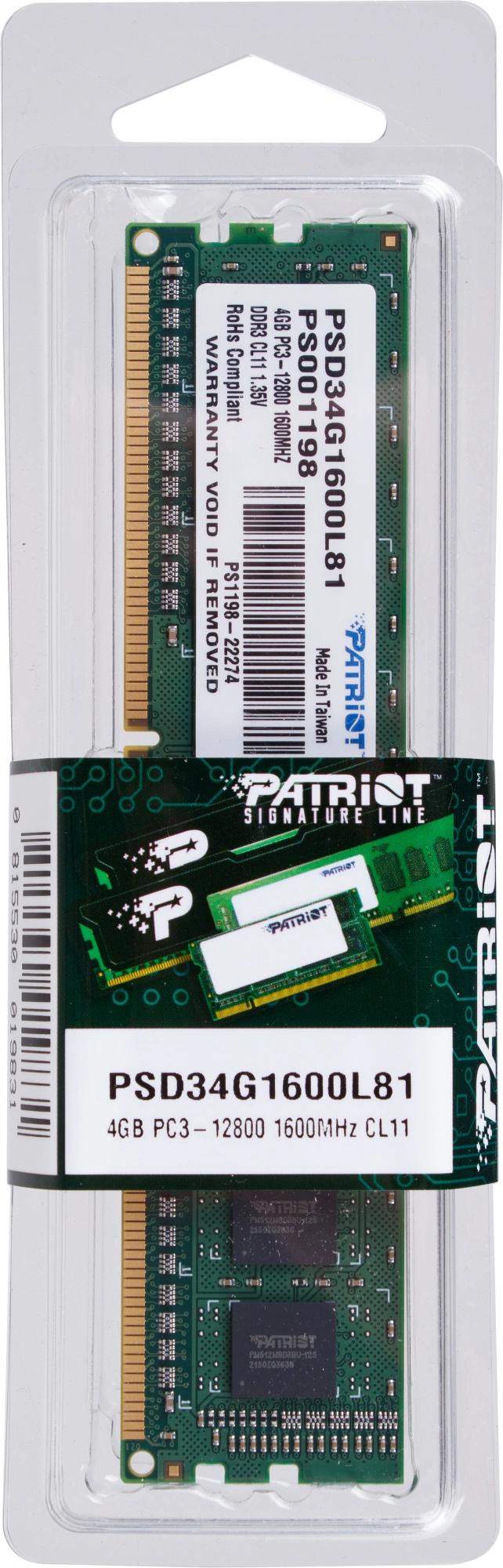 Память DDR3L 4Gb 1600MHz Patriot PSD34G1600L81 Signature RTL PC3-12800 CL11 DIMM 240-pin 1.35В single rank Ret
