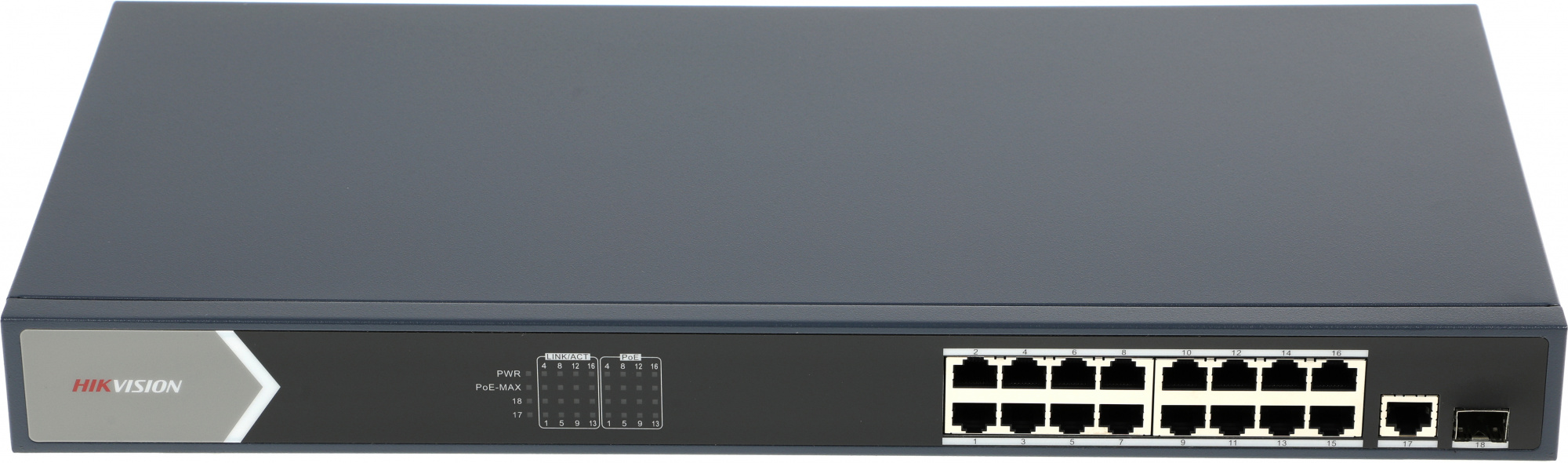 Коммутатор Hikvision DS-3E0518P-E 17x1Гбит/с 1SFP 16PoE+ 230W неуправляемый