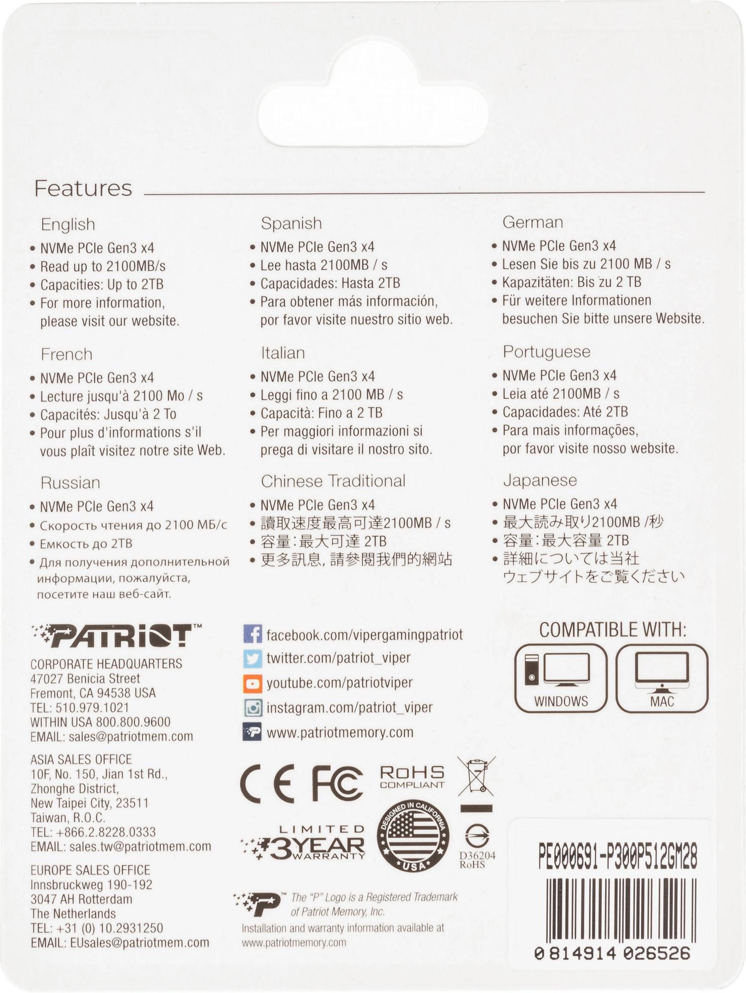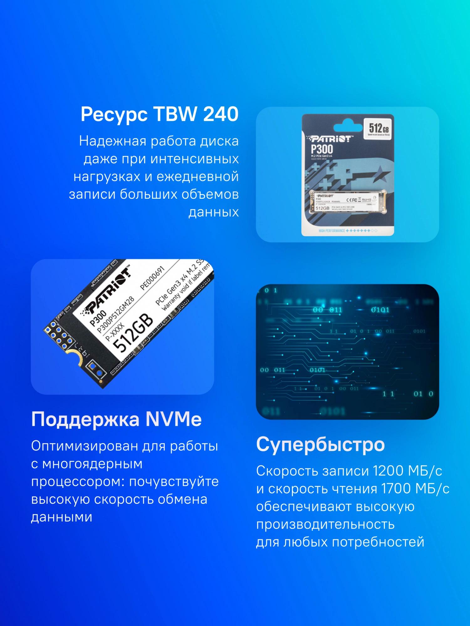 Накопитель SSD Patriot PCIe 3.0 x4 512GB P300P512GM28 P300 M.2 2280