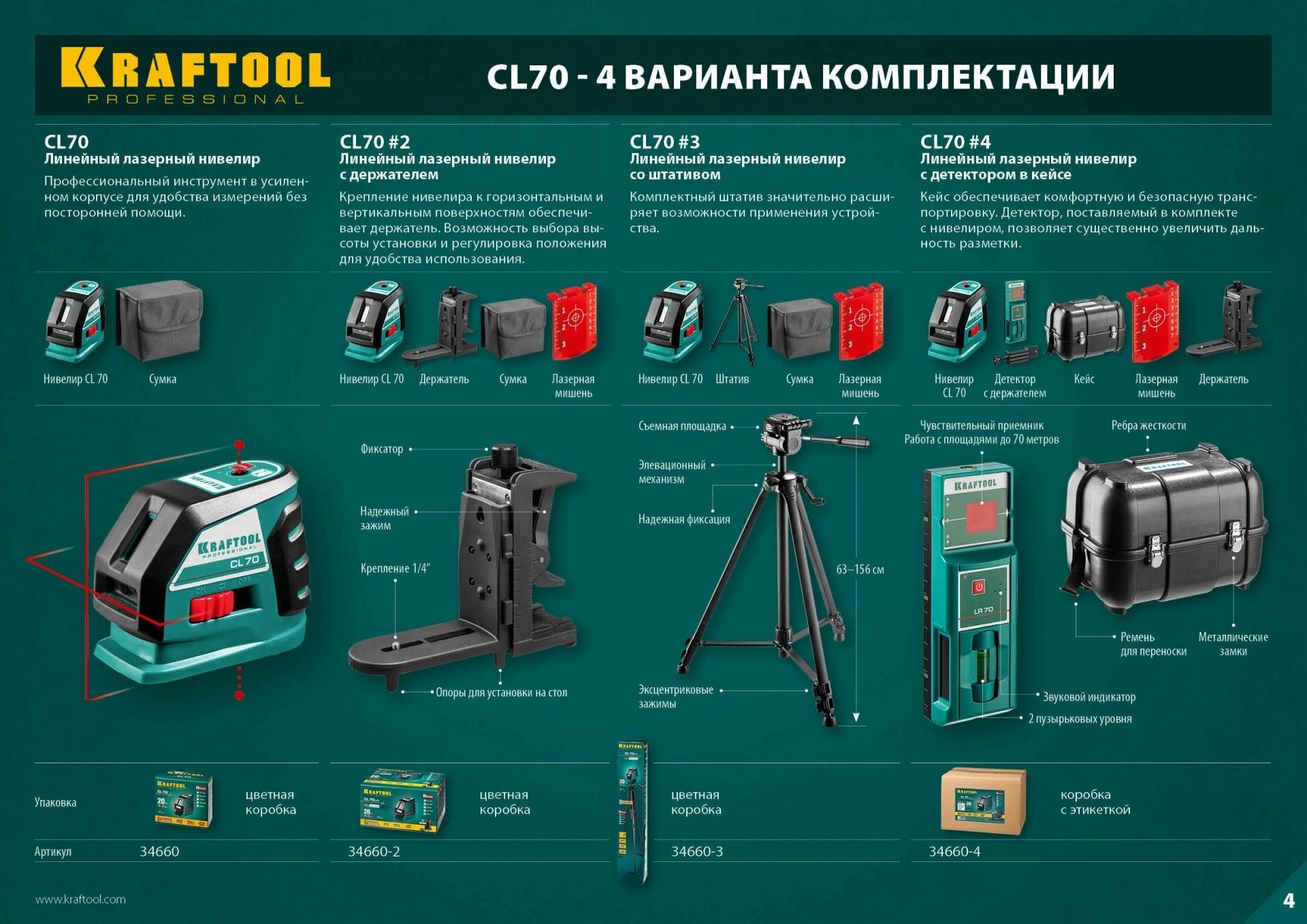 Нивелир лазерн. Kraftool 34660-4 цв.луч. красный 2луч.