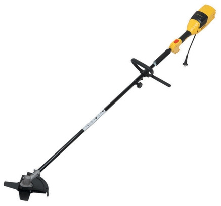 Антивибрационная система двигателя. Верхнее расположение двигателя. Большая мощность.Двойная изоляция обмотки двигателя. Прямая стальная штанга. Усиленный гибкий вал. Полуавтоматическая шпуля с двумя режущими лесками. Четырехлопастной металлический диск. Удобная регулировка под рост оператора.