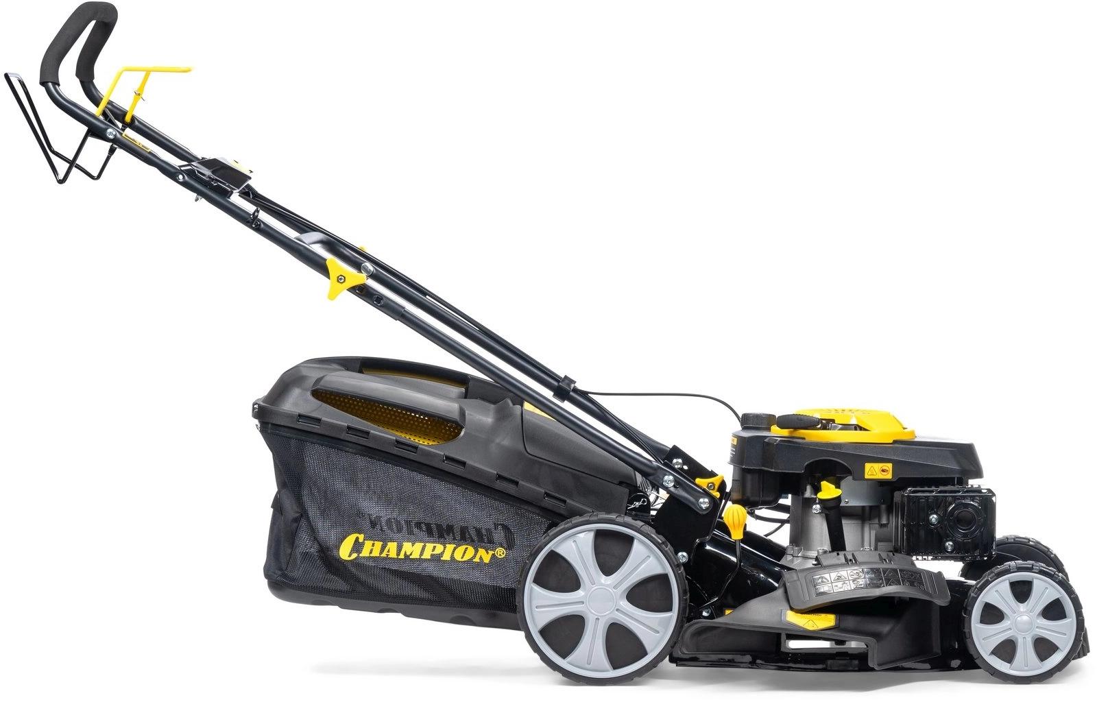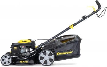 Большие задние колеса. Четырехтактный двигатель. Верхнее расположение клапанов. Глушитель обеспечивающий пониженный уровень шума. Самоходная. Большой комбинированный травосборник. Стальной корпус. Центральная регулировка высоты скашивания. Складывающаяся рукоятка. Сбалансированный центр тяжести.