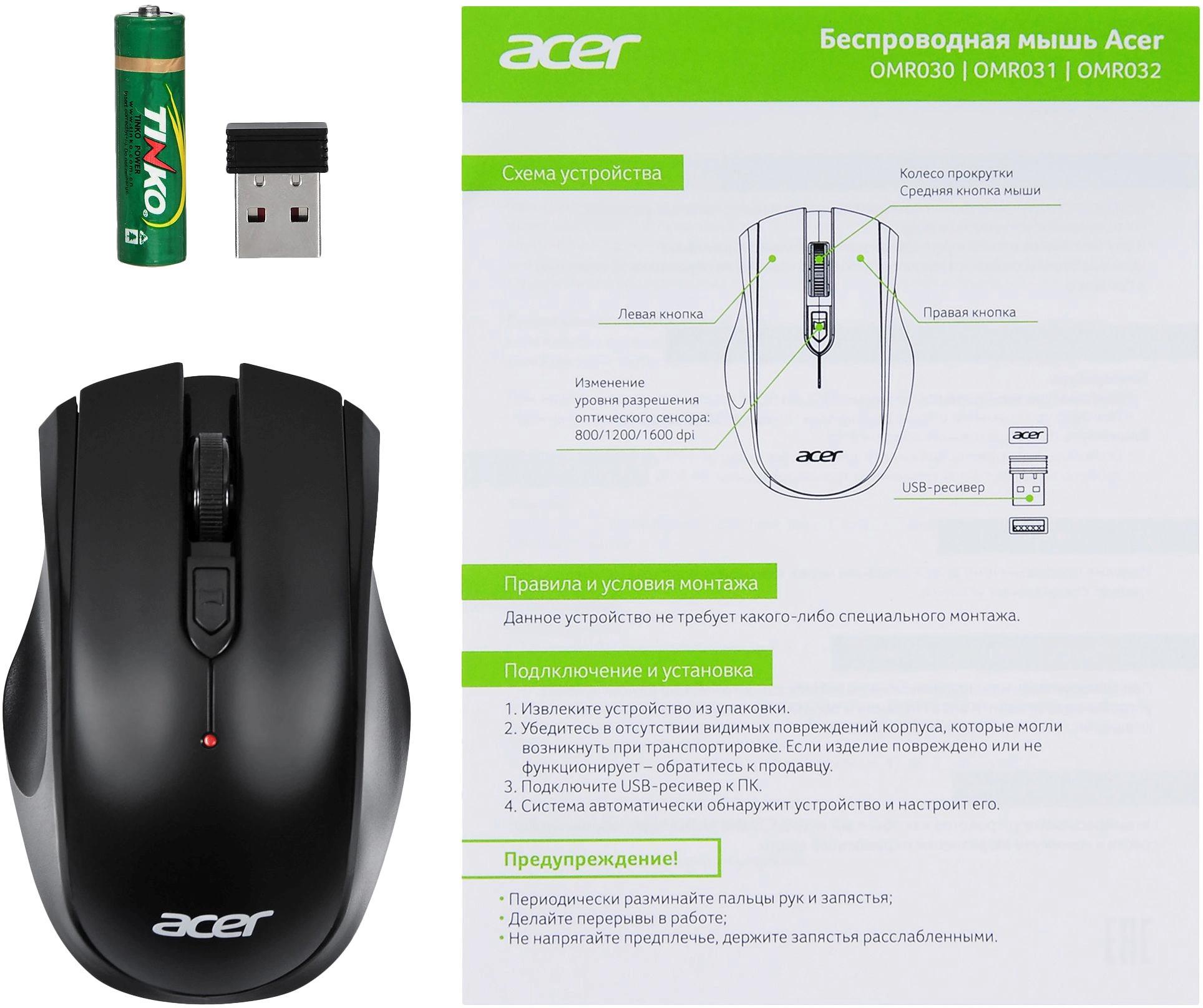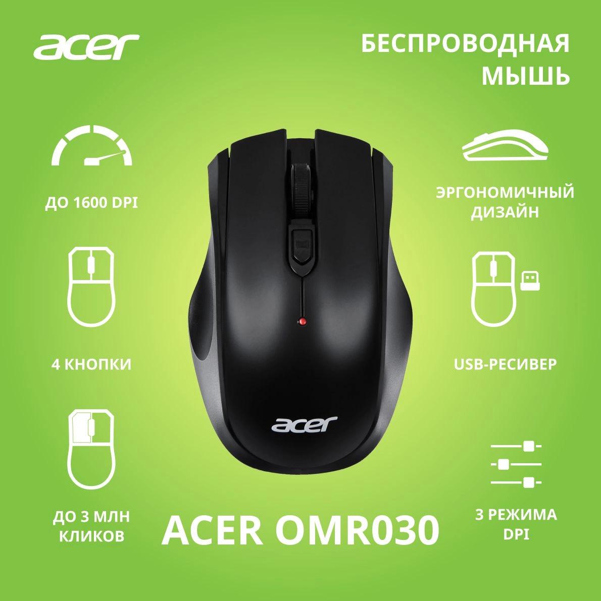 Мышь Acer OMR030 черный оптическая 1600dpi беспров. USB 4but (ZL.MCEEE.007)