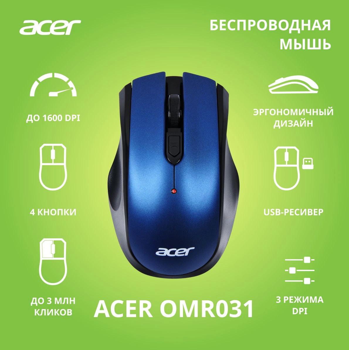 Мышь Acer OMR031 черный/синий оптическая 1600dpi беспров. USB 4but (ZL.MCEEE.008)