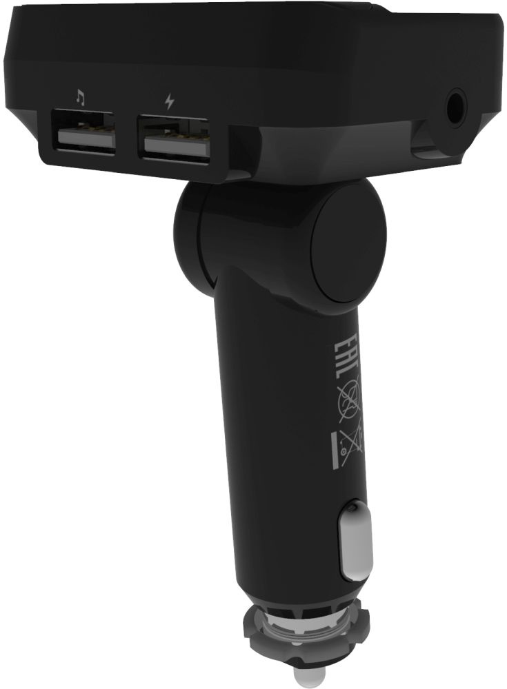 FM-трансмиттер с USB-портом зарядки 5В/2.4А и AUX-входом, предназначен для воспроизведения звонков и аудиофайлов с вашего телефона или подключенного USB-накопителя через динамики автомобильной аудиосистемы.