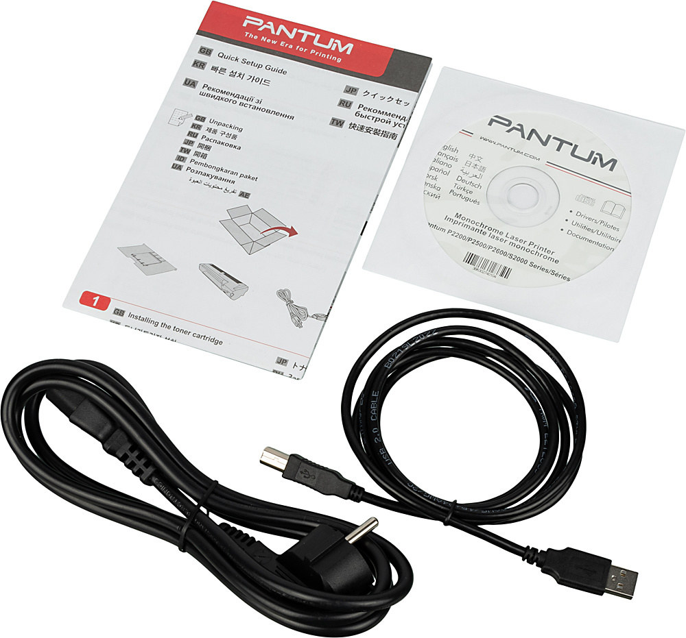 Принтер P2500.Стартовый картридж PC-210E (700 страниц, перезаправляемый).Краткое руководство по установке.Шнур питания.USB кабель для подключения к компьютеру.Гарантийный талон.
