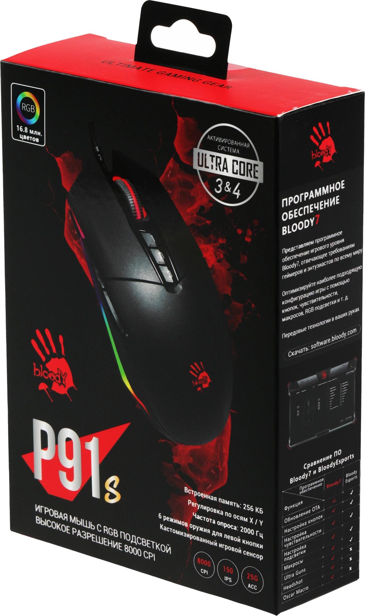Мышь A4Tech Bloody P91s черный оптическая 8000dpi USB 8but (P91S BLACK ACTIVATED)