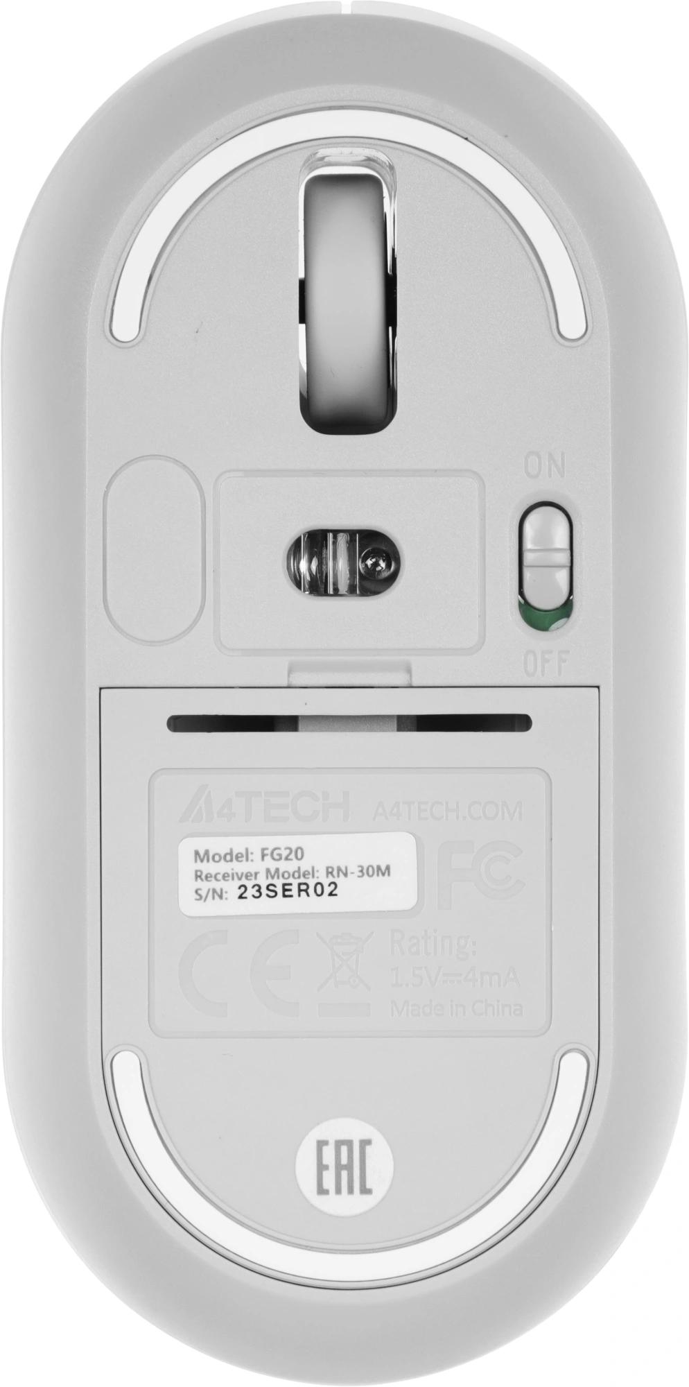 Мышь A4Tech Fstyler FG20 белый оптическая 2000dpi беспров. USB для ноутбука 4but (FG20 WHITE)
