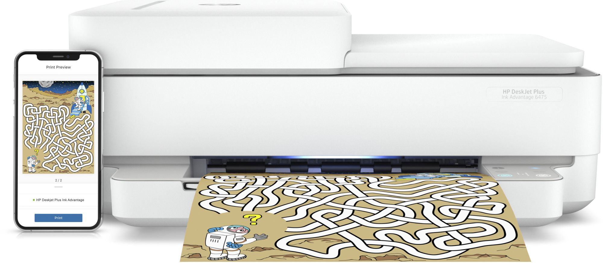 МФУ HP DeskJet Plus Ink Advantage 6475; HP 653, стартовый картридж, черный; HP 653, стартовый картридж, трехцветный; листовка с нормативными требованиями; руководство по установке; справочное руководство; кабель питания.