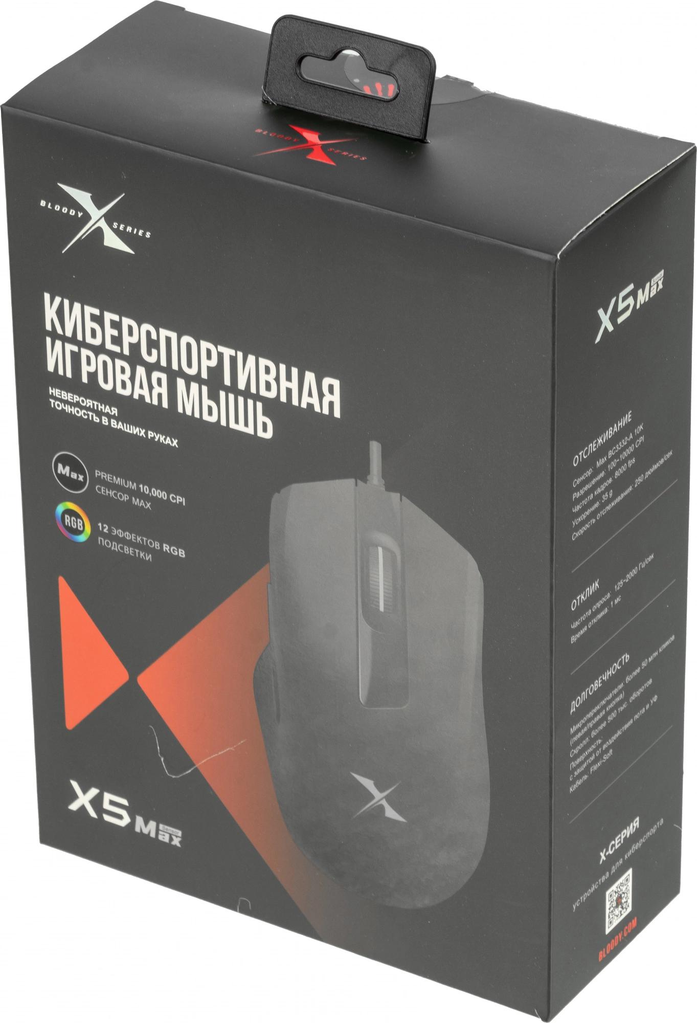 Мышь A4Tech Bloody X5 Max черный оптическая 10000dpi USB 9but