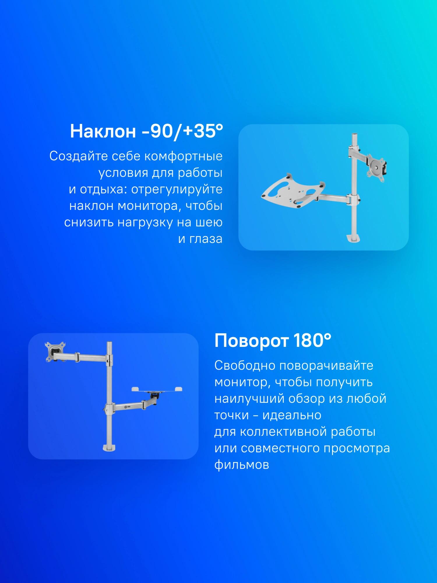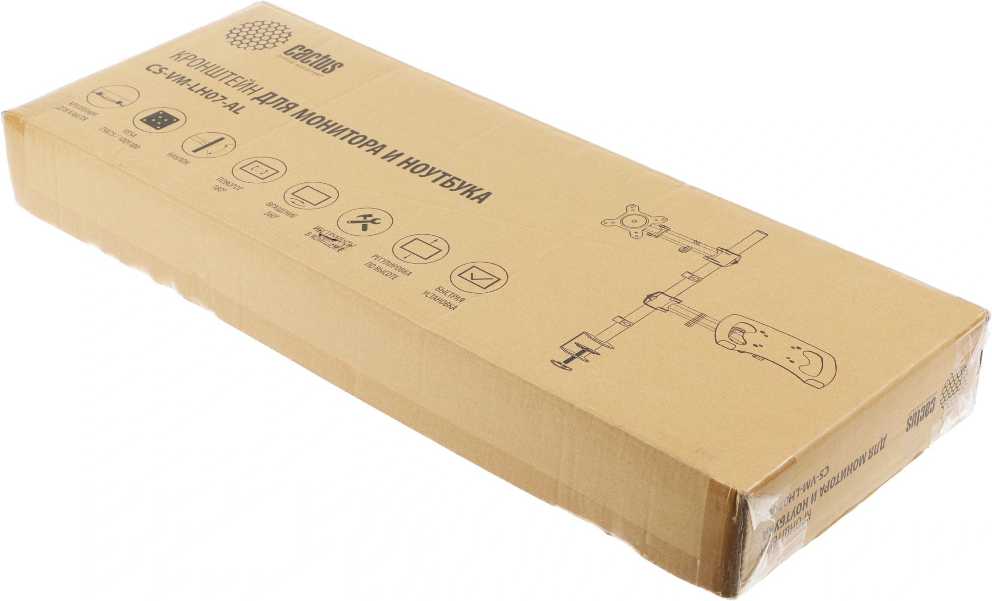 Кронштейн для монитора/ноутбука Cactus CS-VM-LH07-AL серебряный 13"-27" макс.8кг настольный поворот и наклон