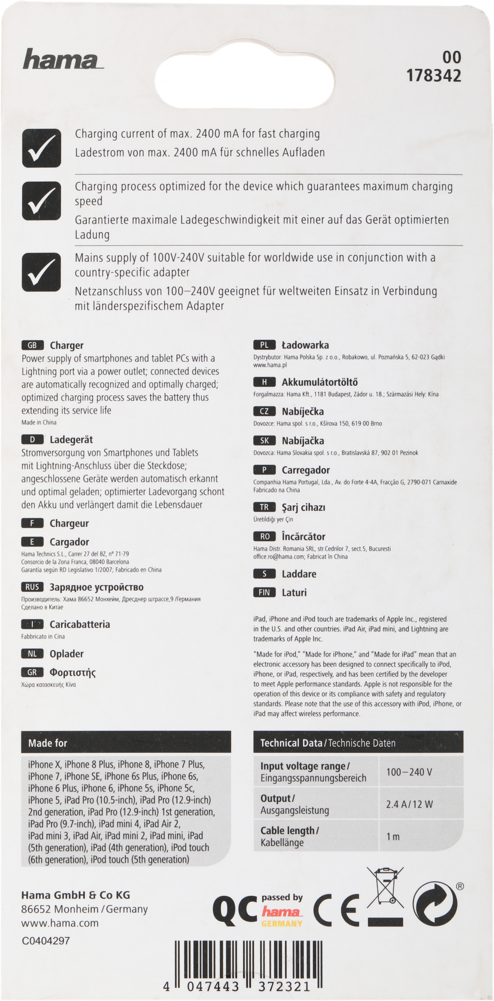 Сетевое зарядное устройство для продукции Apple с разъемом 8-pin Lightning