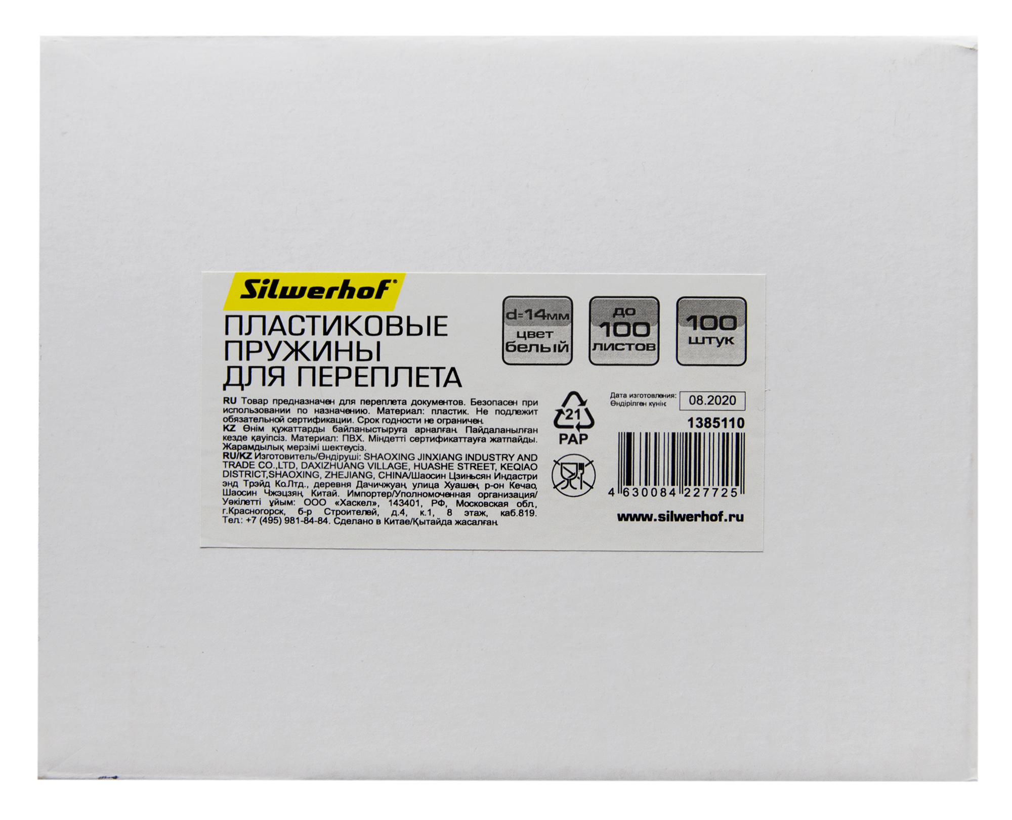 Пружины для переплета пластиковые Silwerhof d=14мм 81-100лист A4 белый (100шт) Daily