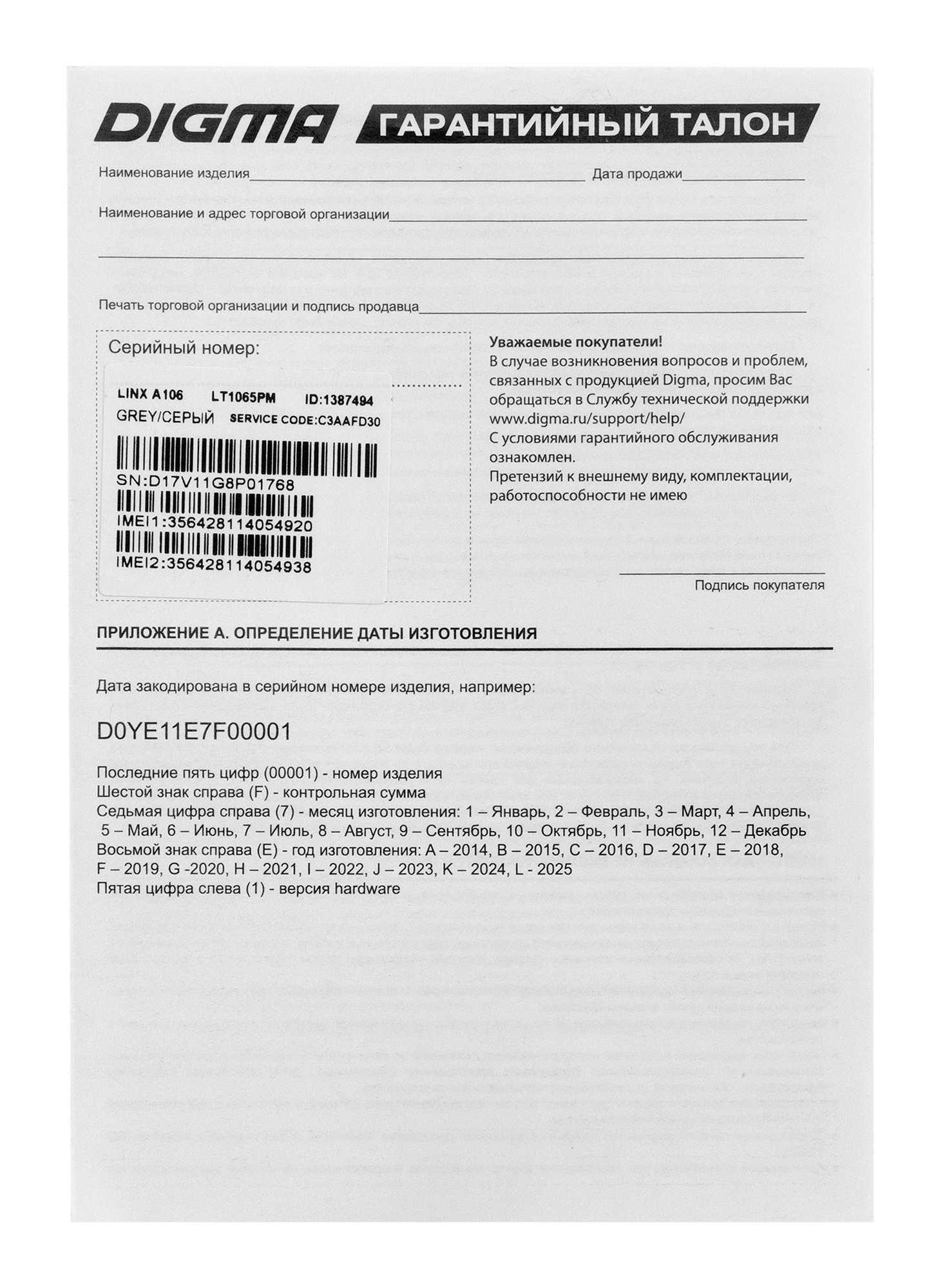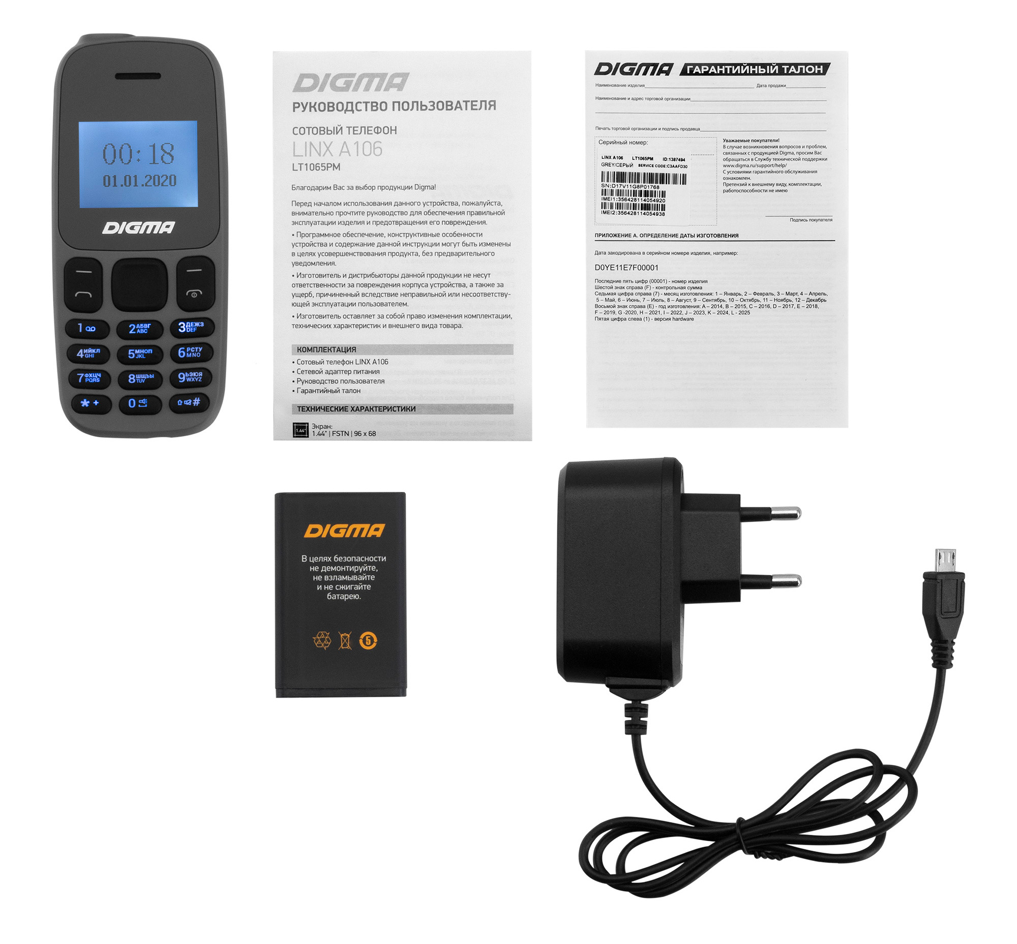 Мобильный телефон Digma A106 Linx 32Mb серый моноблок 2Sim 1.44" 68x98 GSM900/1800