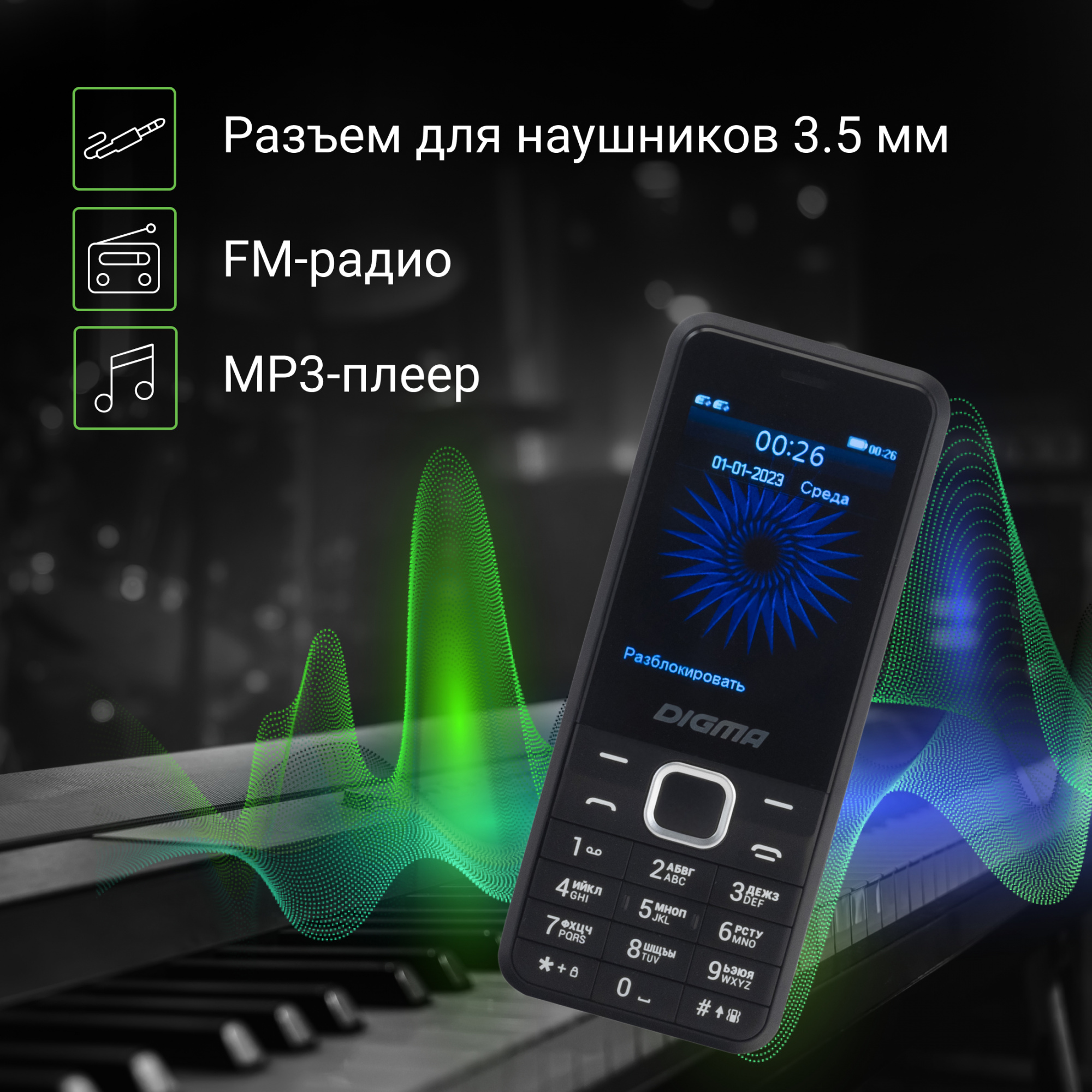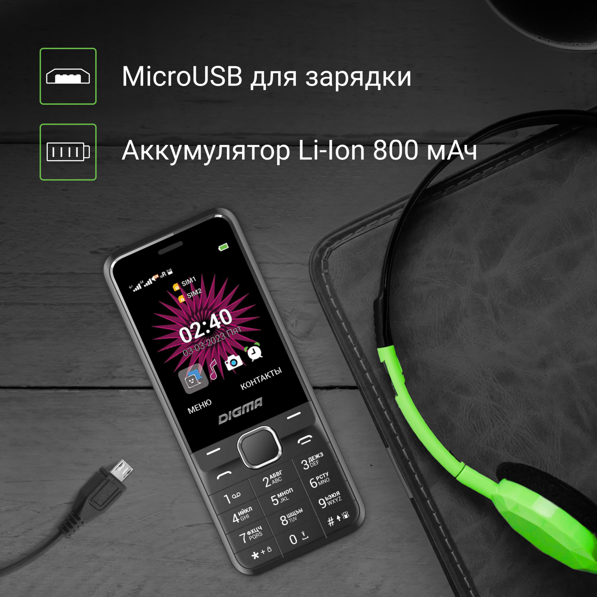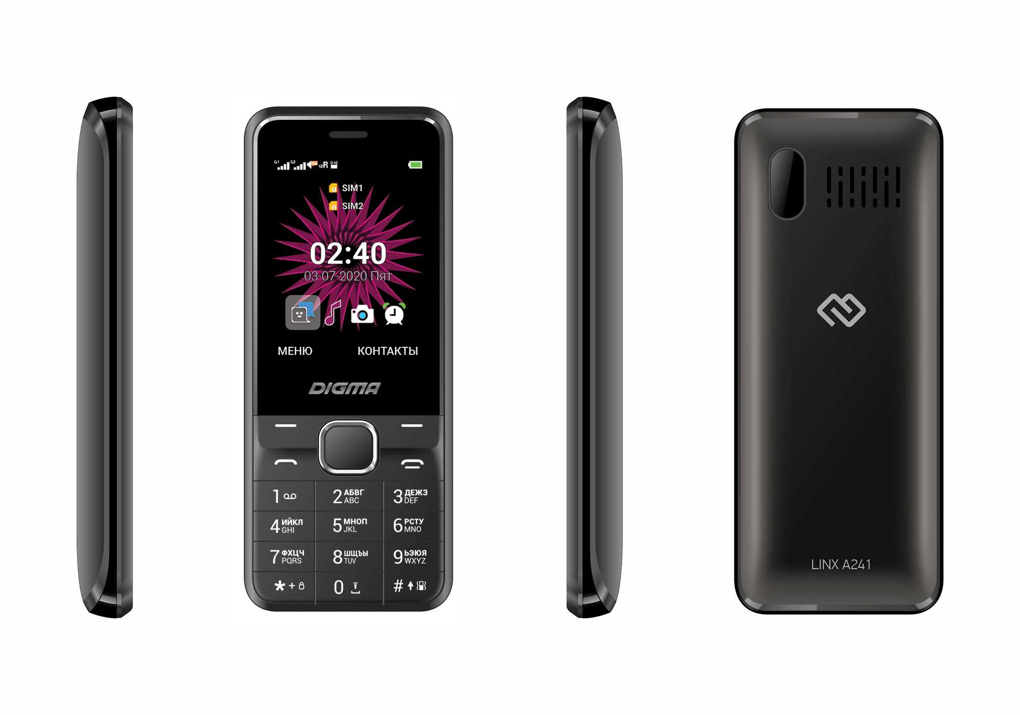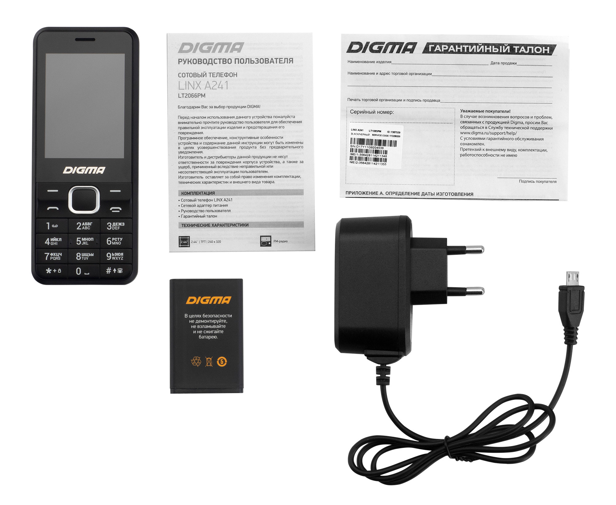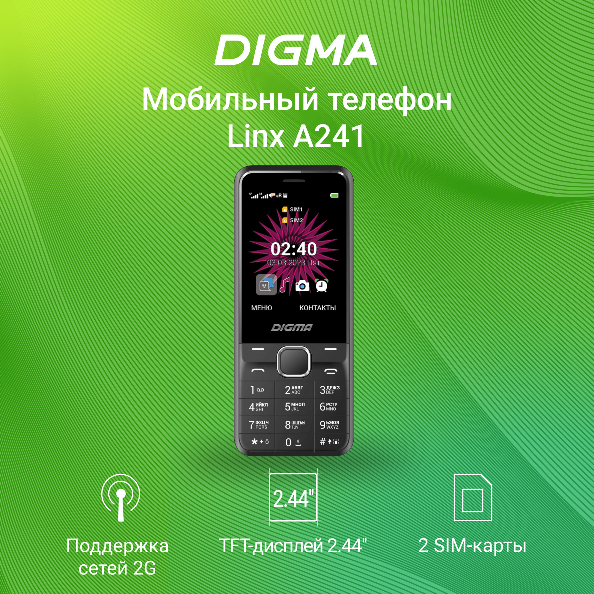 Мобильный телефон Digma A241 Linx 32Mb черный моноблок 2Sim 2.44" 240x320 GSM900/1800 MP3 FM