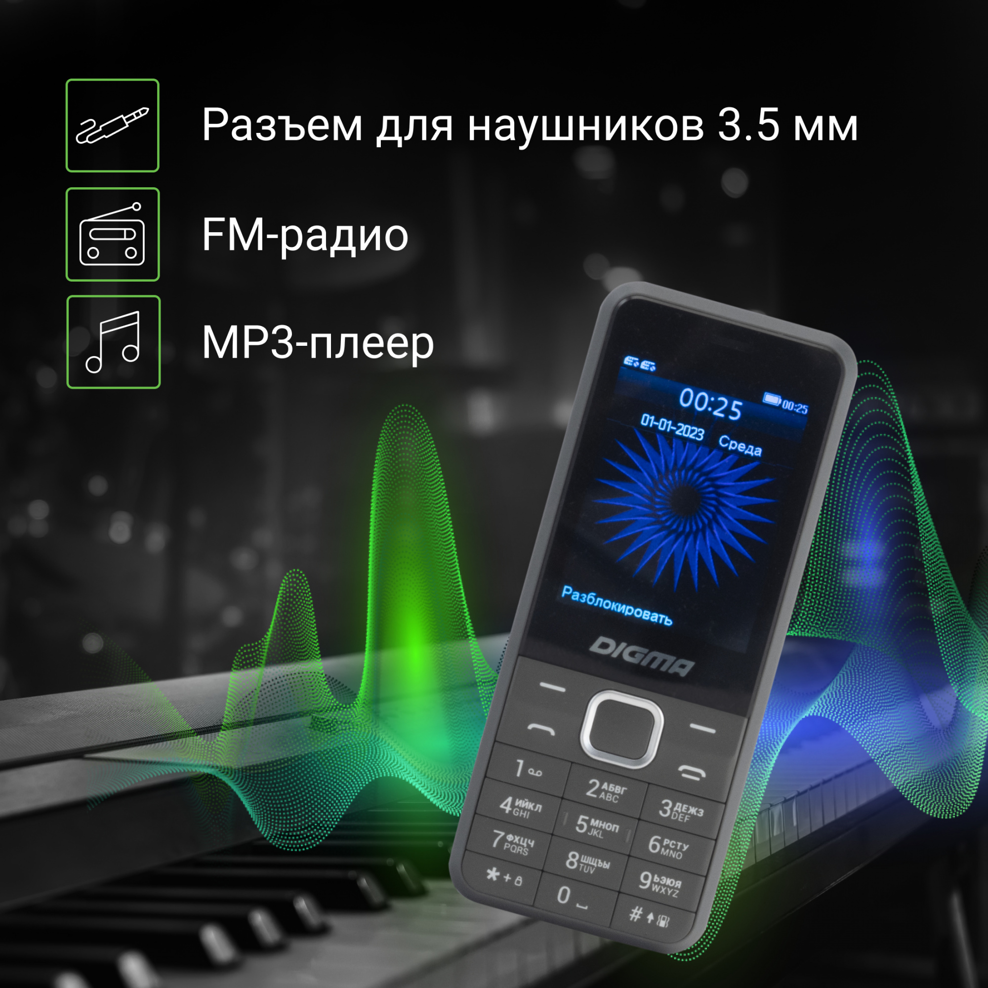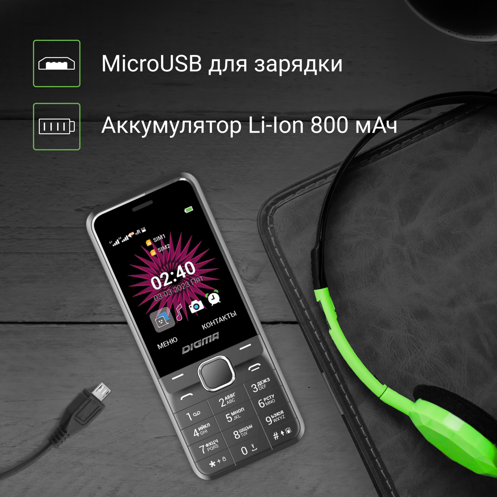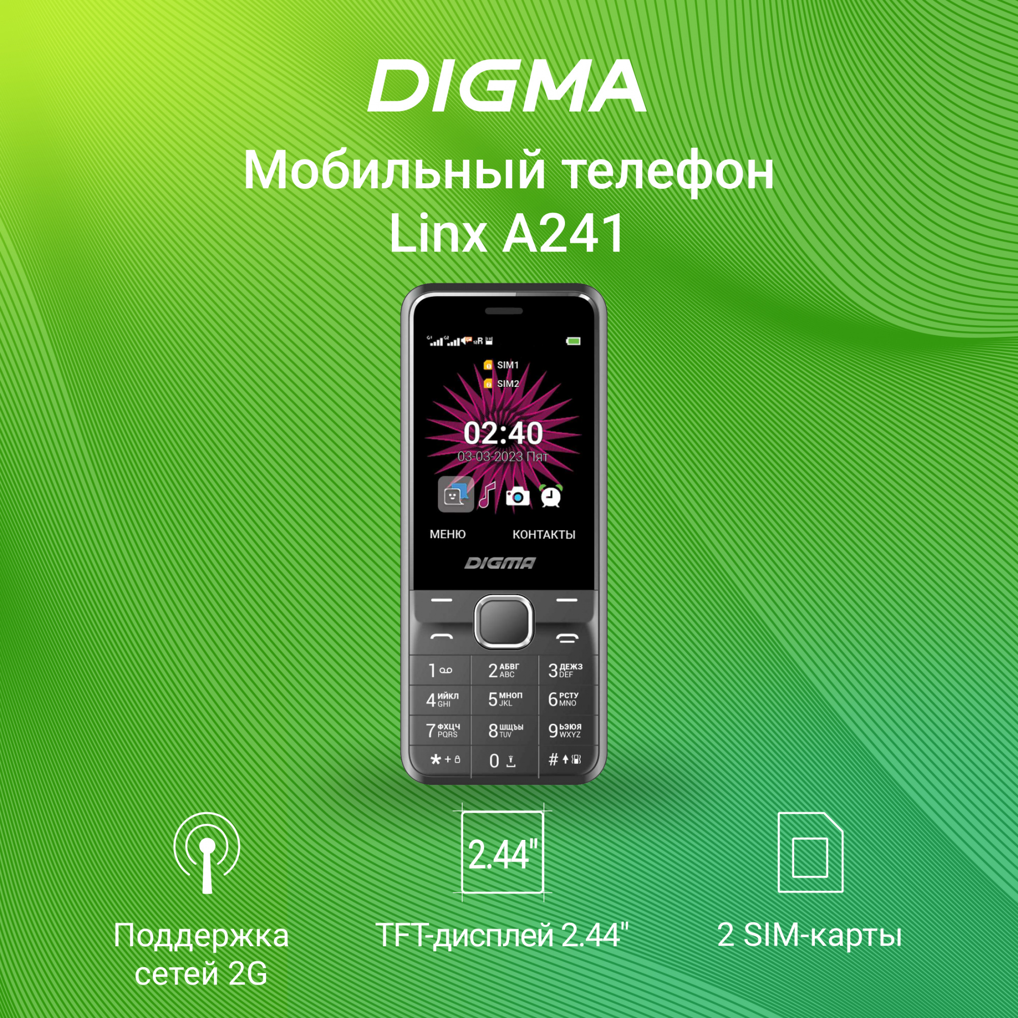 Мобильный телефон Digma A241 Linx 32Mb серый моноблок 2Sim 2.44" 240x320 GSM900/1800 MP3 FM