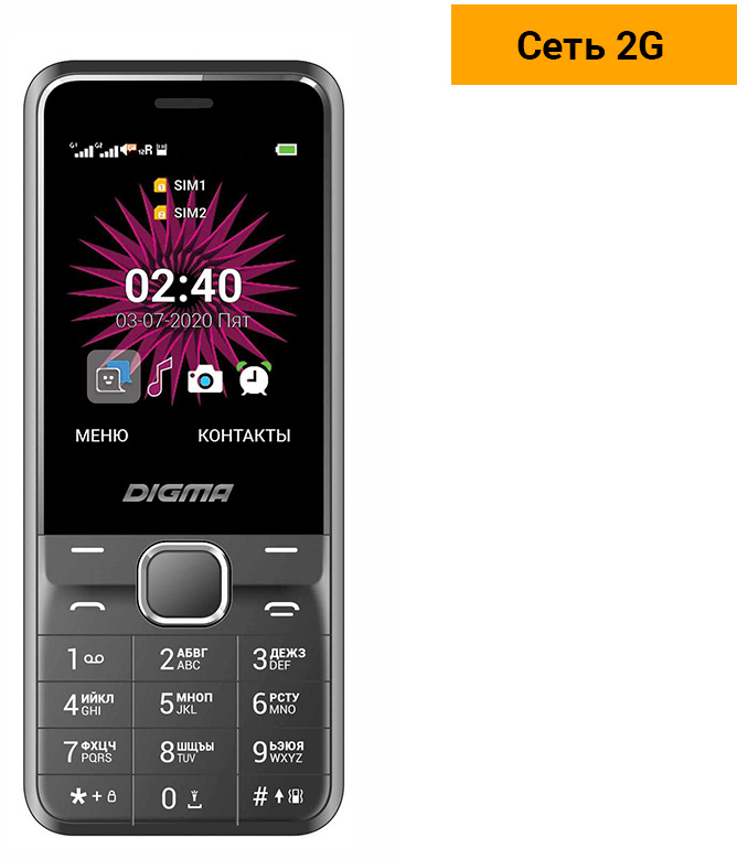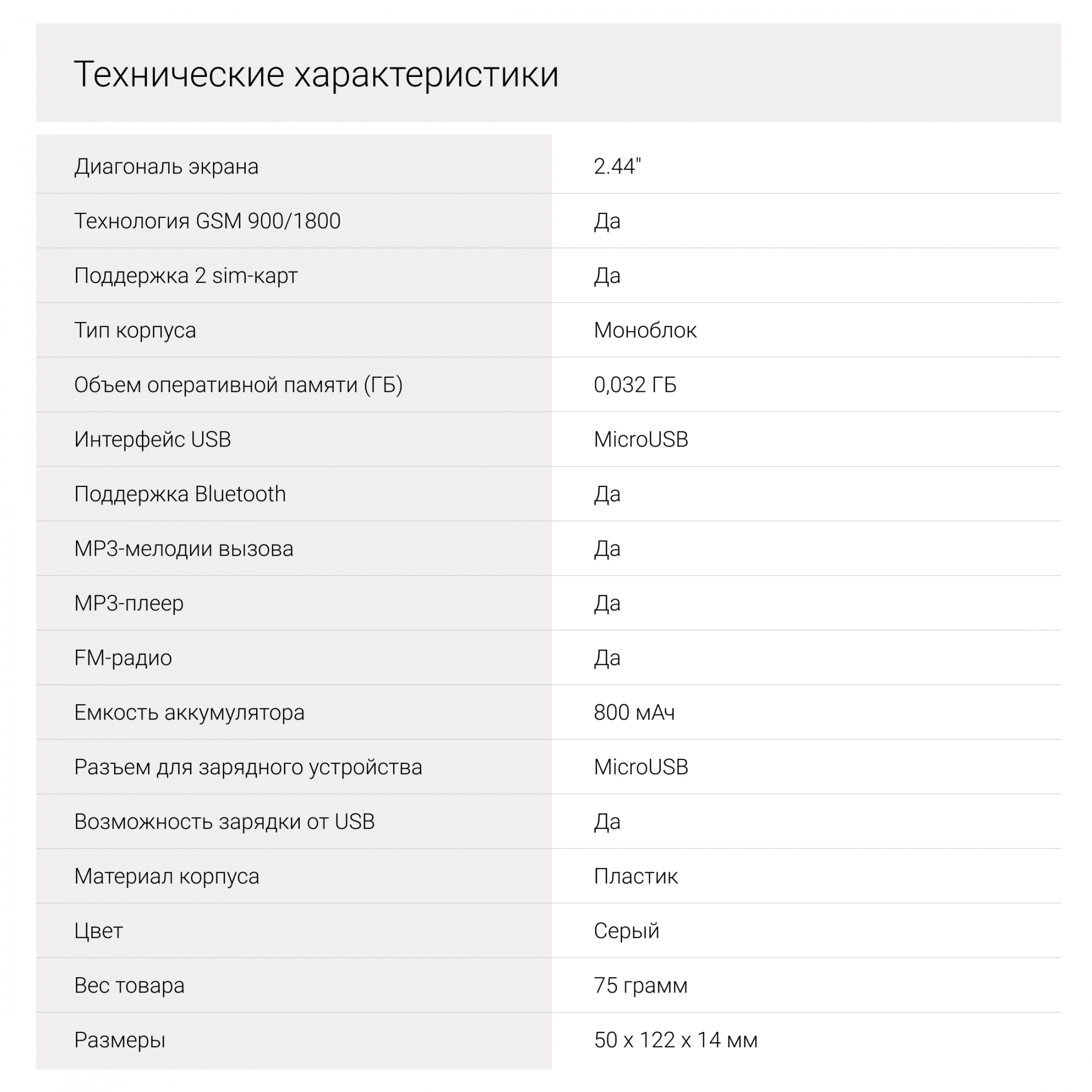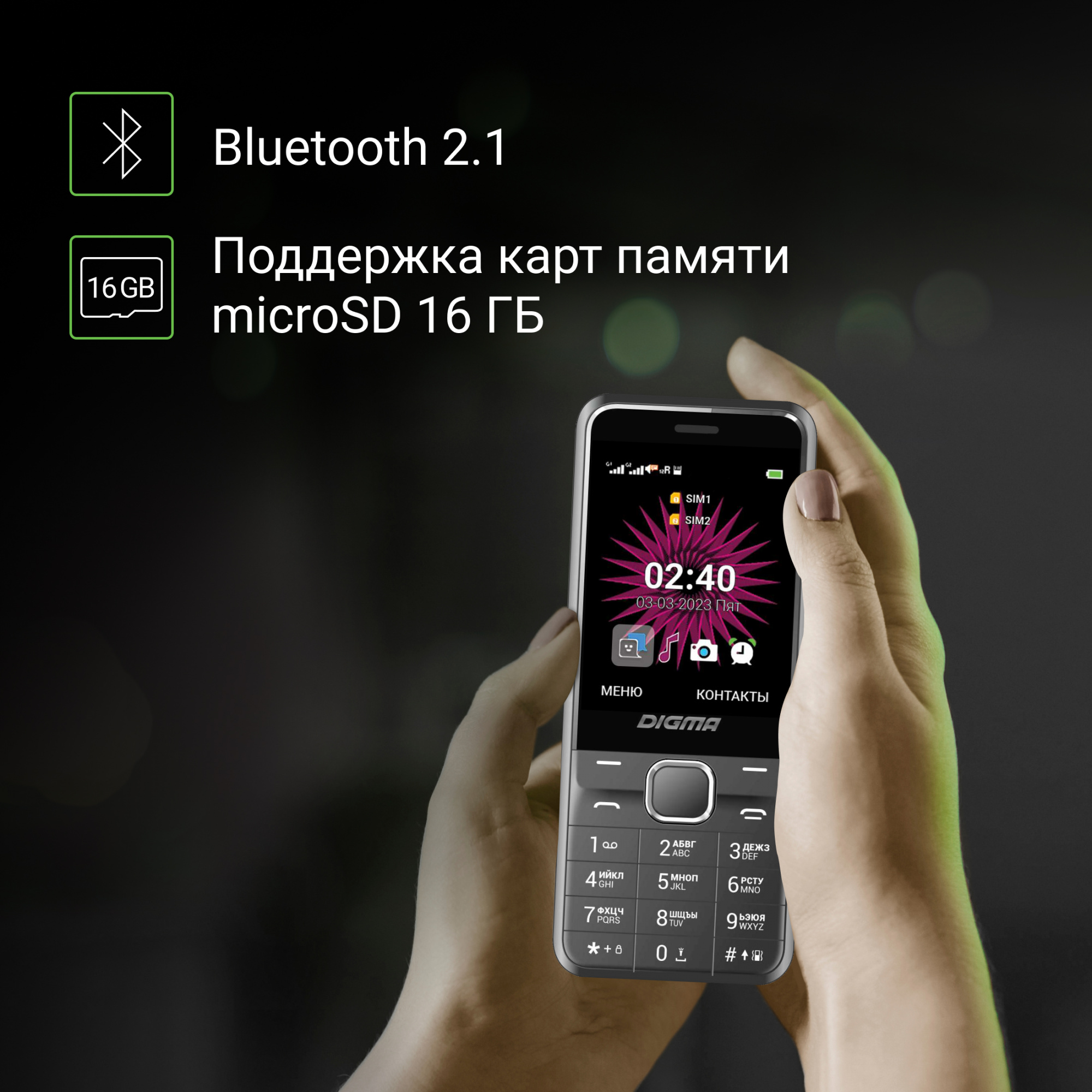 Мобильный телефон Digma A241 Linx 32Mb серый моноблок 2Sim 2.44" 240x320 GSM900/1800 MP3 FM