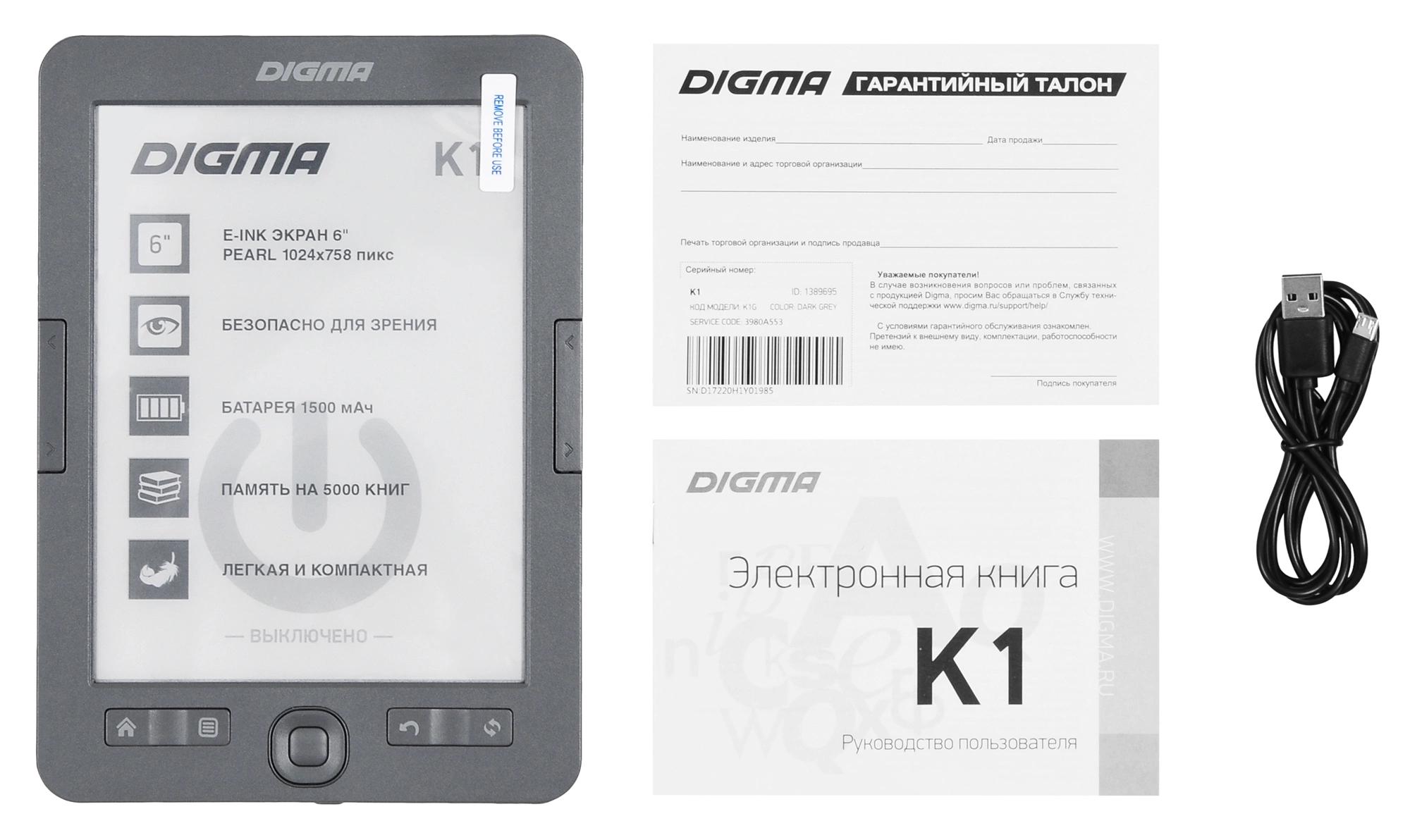 Электронная книга K1USB-кабельРуководство пользователяГарантийный талон