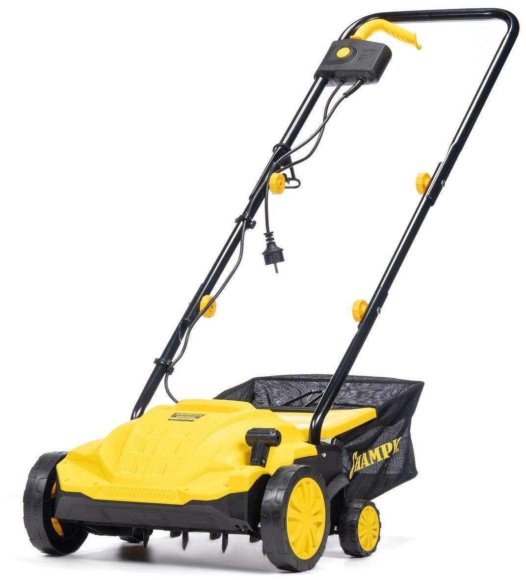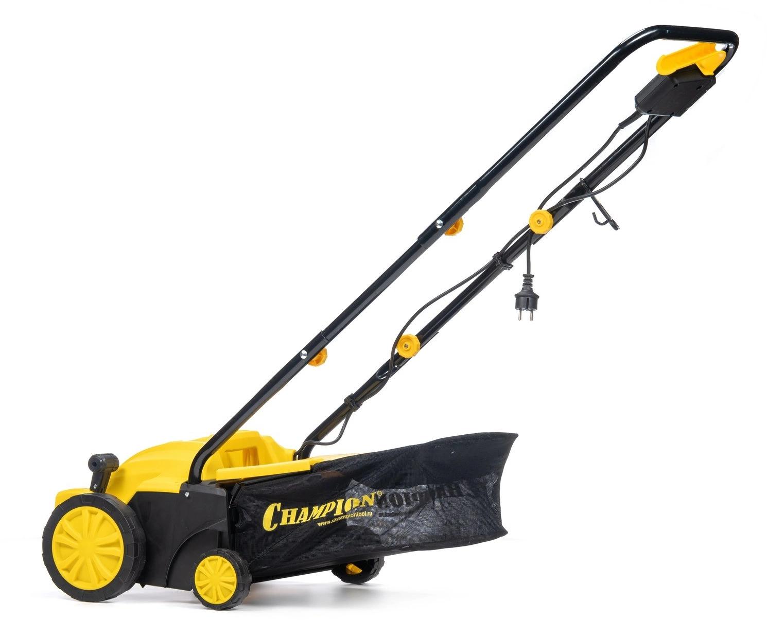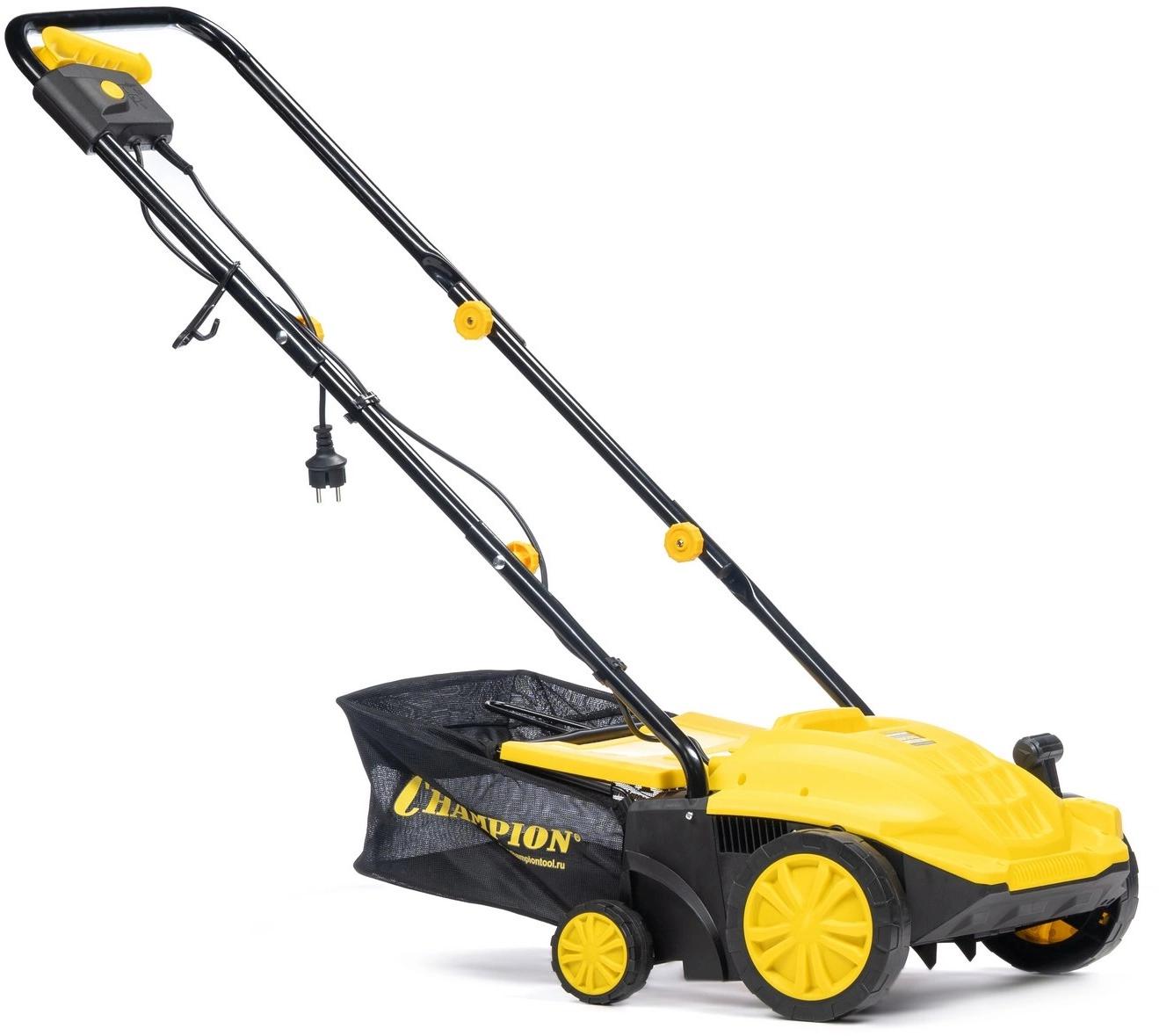 Champion ESC1532 предназначен для ухода за газонами. Подходит для выполнения различных задач: аэрации, очистки от сухой растительности, мха, мусора. Модель не выделяет выхлопных газов и отличается легкостью. Центральный рычаг имеет четыре положения для регулировки глубины обработки.