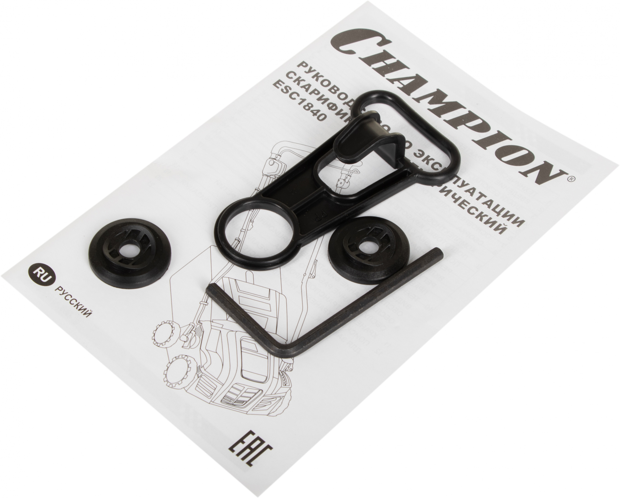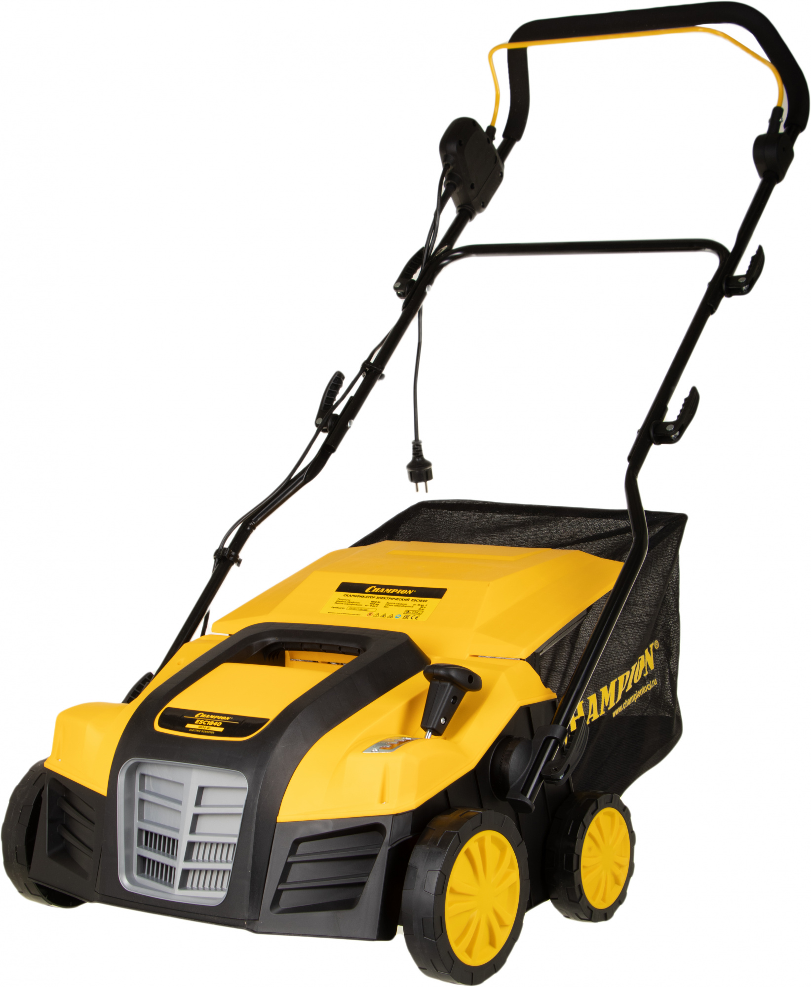 Champion ESC1840 имеет два сменных рабочих валика. Выполняет две функции: аэрацию почвы и скарификацию. Модель не выделяет выхлопных газов и отличается легкостью. Центральный рычаг имеет четыре положения для регулировки глубины обработки. Травосборник 55 л.