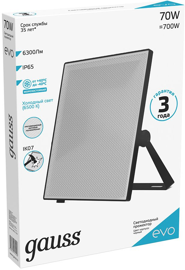 Прожектор уличный Gauss EVO светодиодный 70Втчерный (687511370)