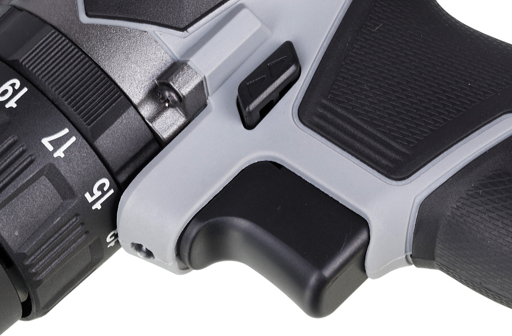 Редуктор с механическим переключением скоростей; управление скоростью вращения нажатием на курок; БЗП патрон с фиксацией; удобная обрезиненная рукоятка; скоба для подвешивания на ремень; мощная подсветка рабочей зоны, автоматически подключающаяся при недостаточном уровне освещенности.