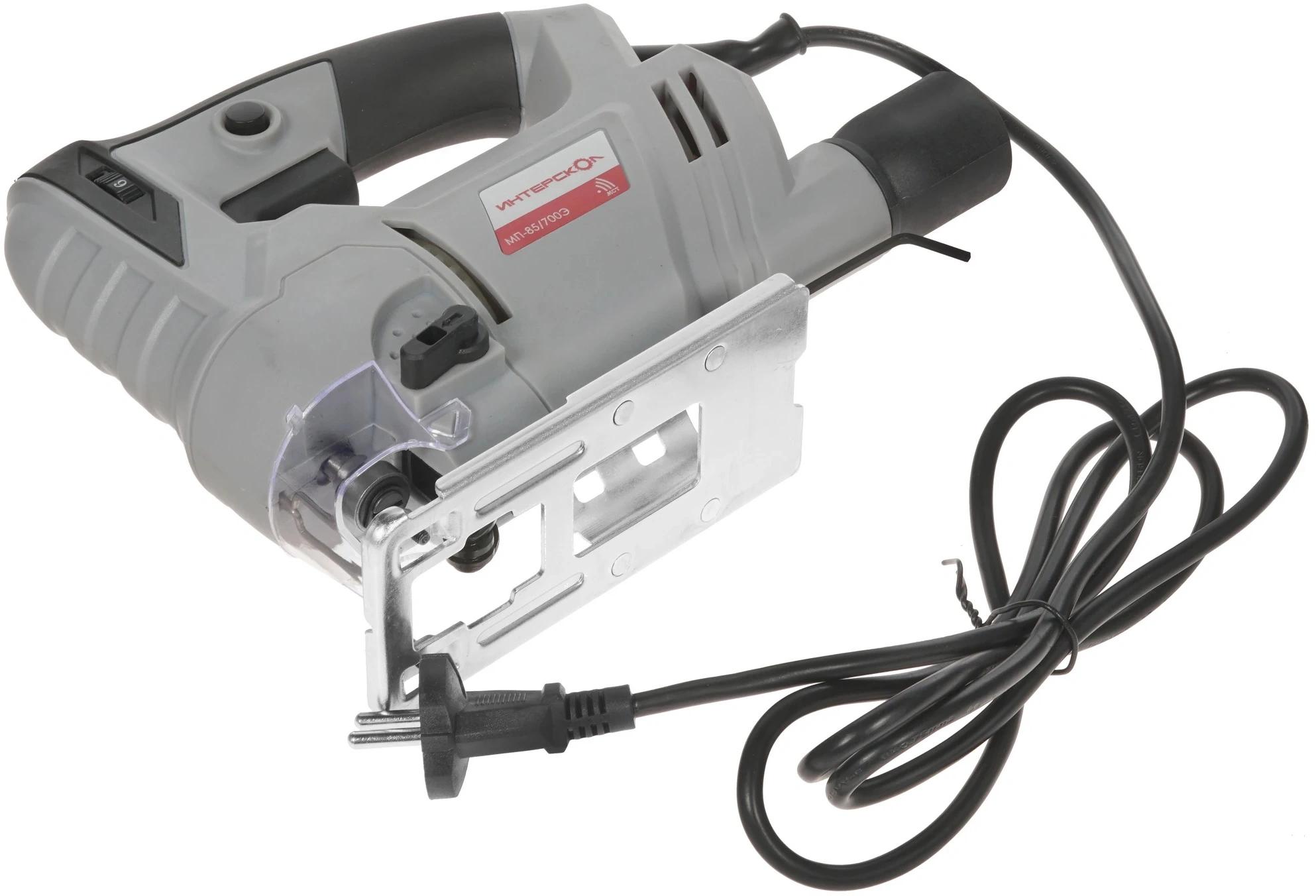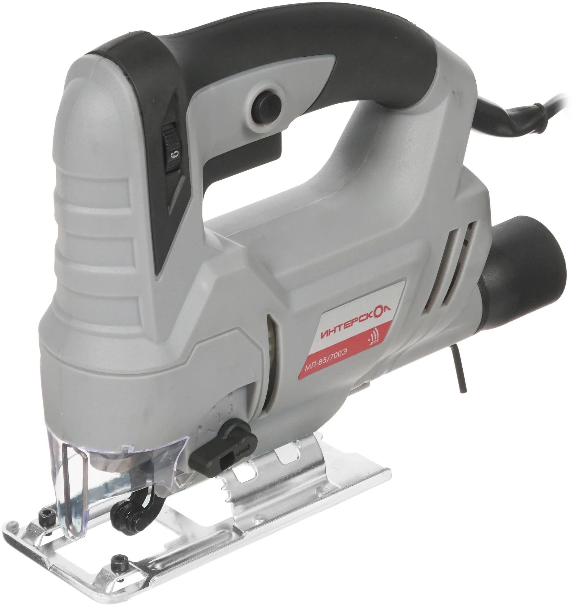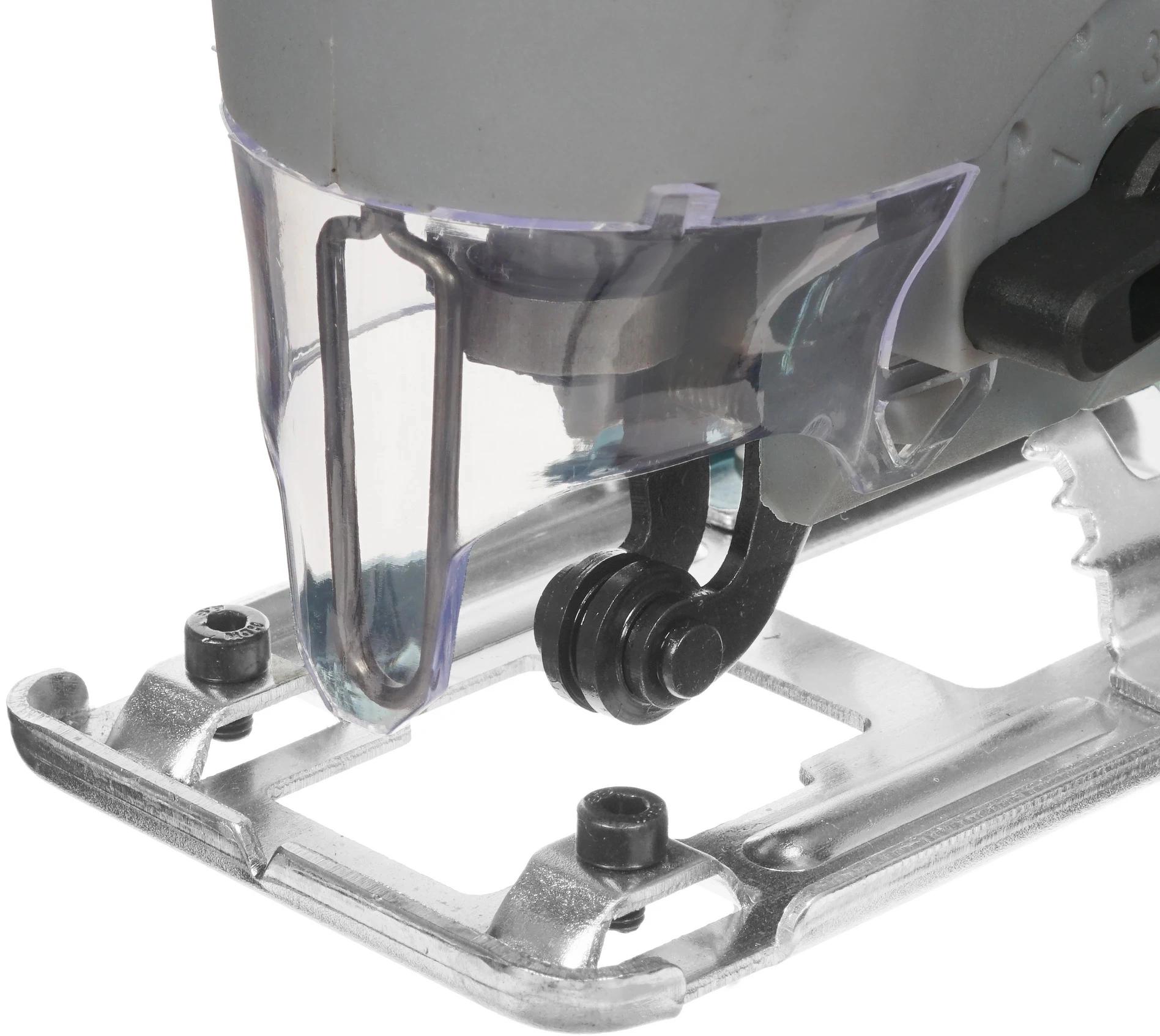 Электронный блок управления. Обрезиненная рукоятка закрытого типа с удобно расположенными органами управления. Бесключевой зажим для пильных полотен. Регулируемое количество двойных ходов. Защитный козырек и защитная скоба.