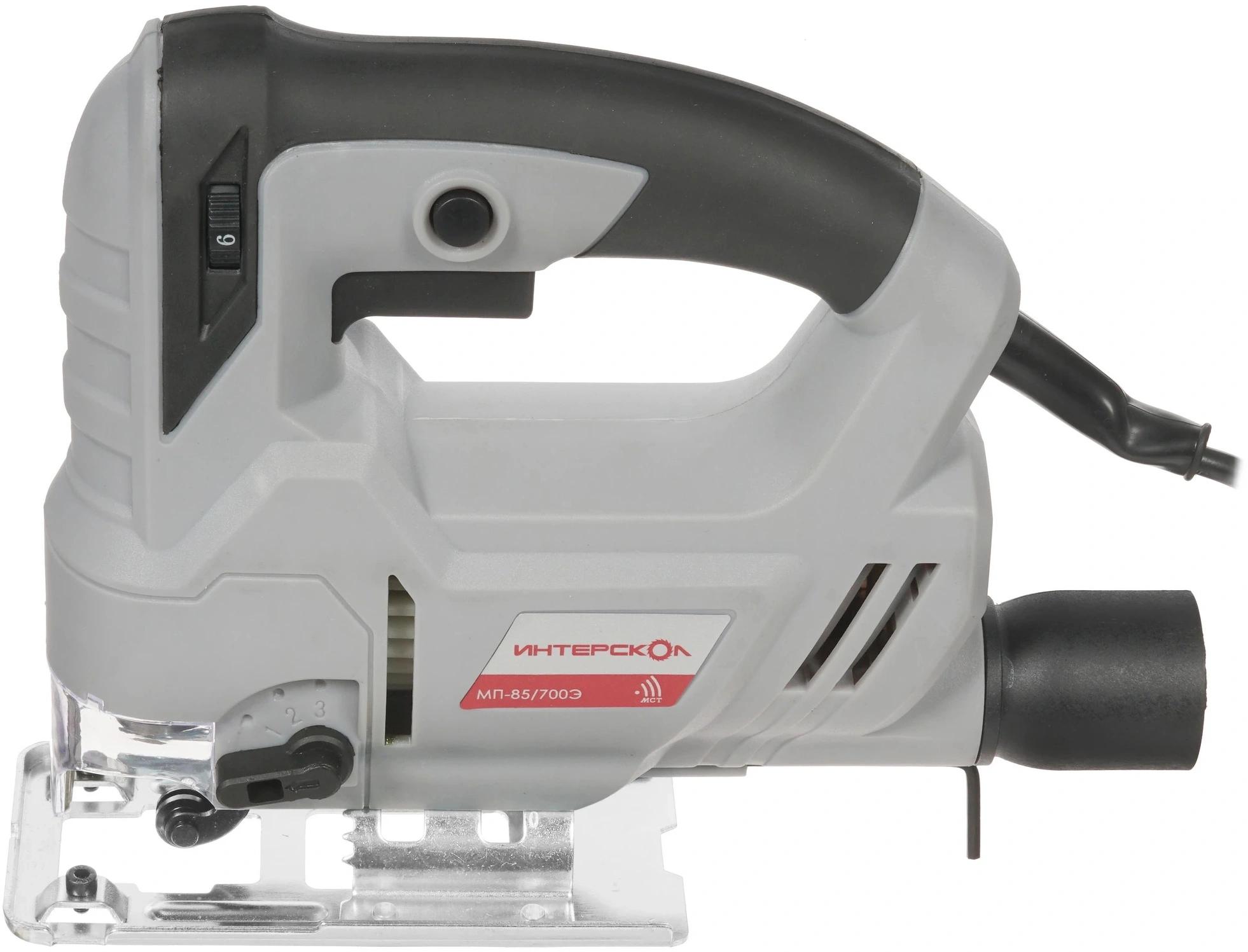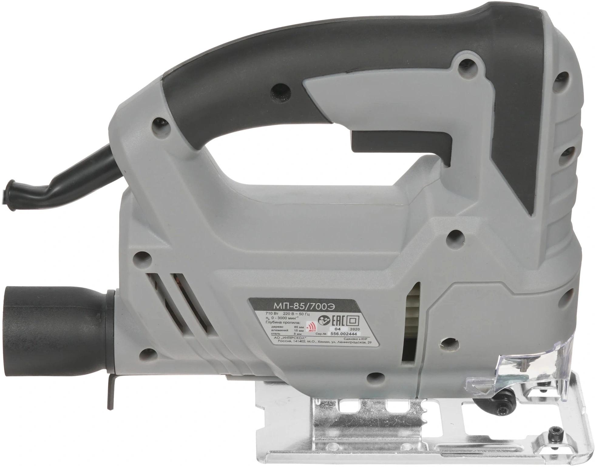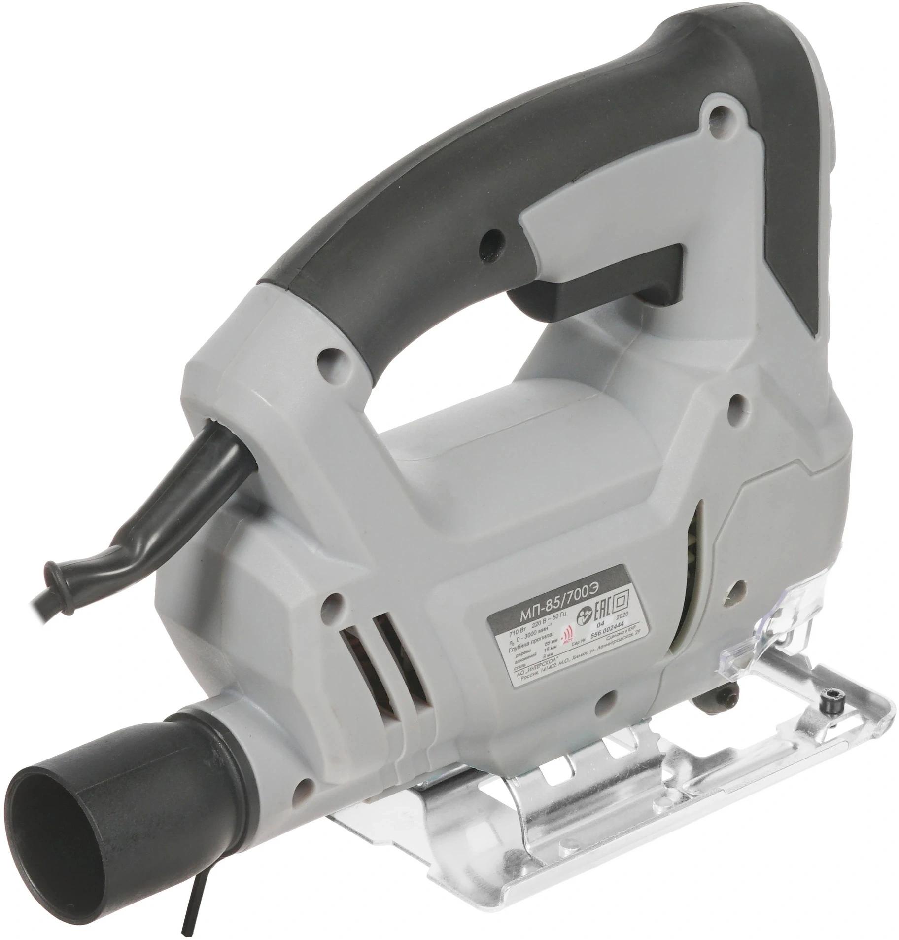 Электронный блок управления. Обрезиненная рукоятка закрытого типа с удобно расположенными органами управления. Бесключевой зажим для пильных полотен. Регулируемое количество двойных ходов. Защитный козырек и защитная скоба.