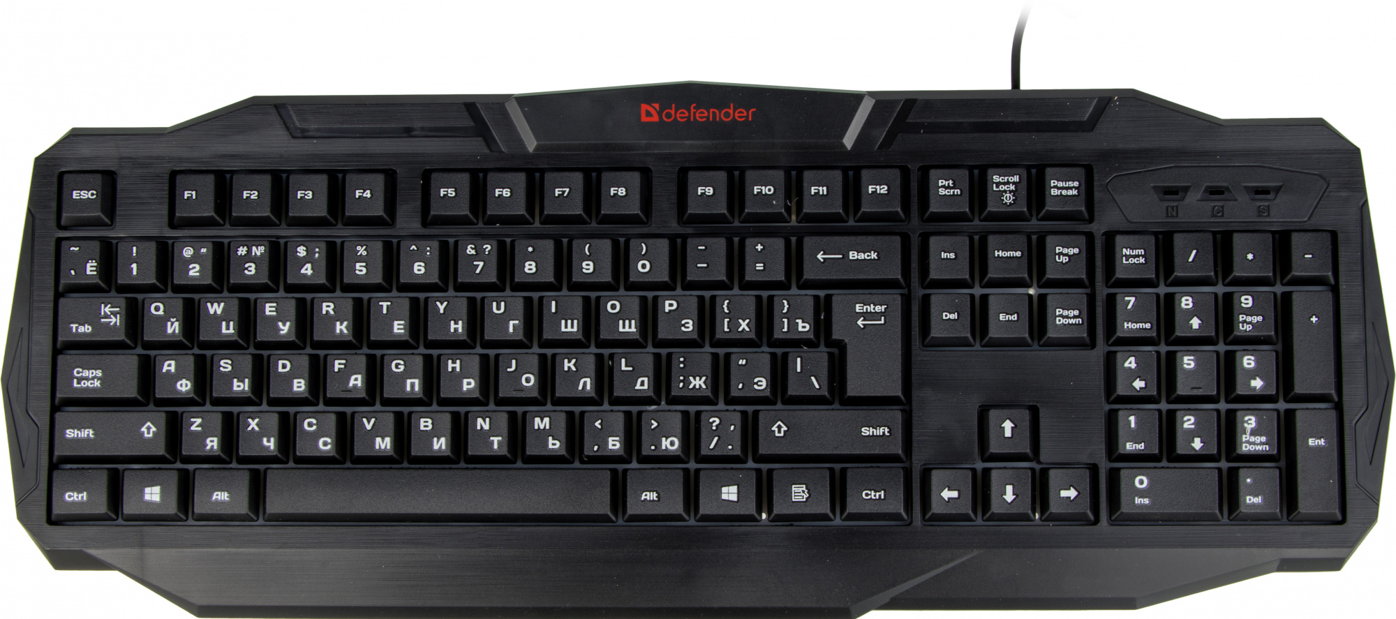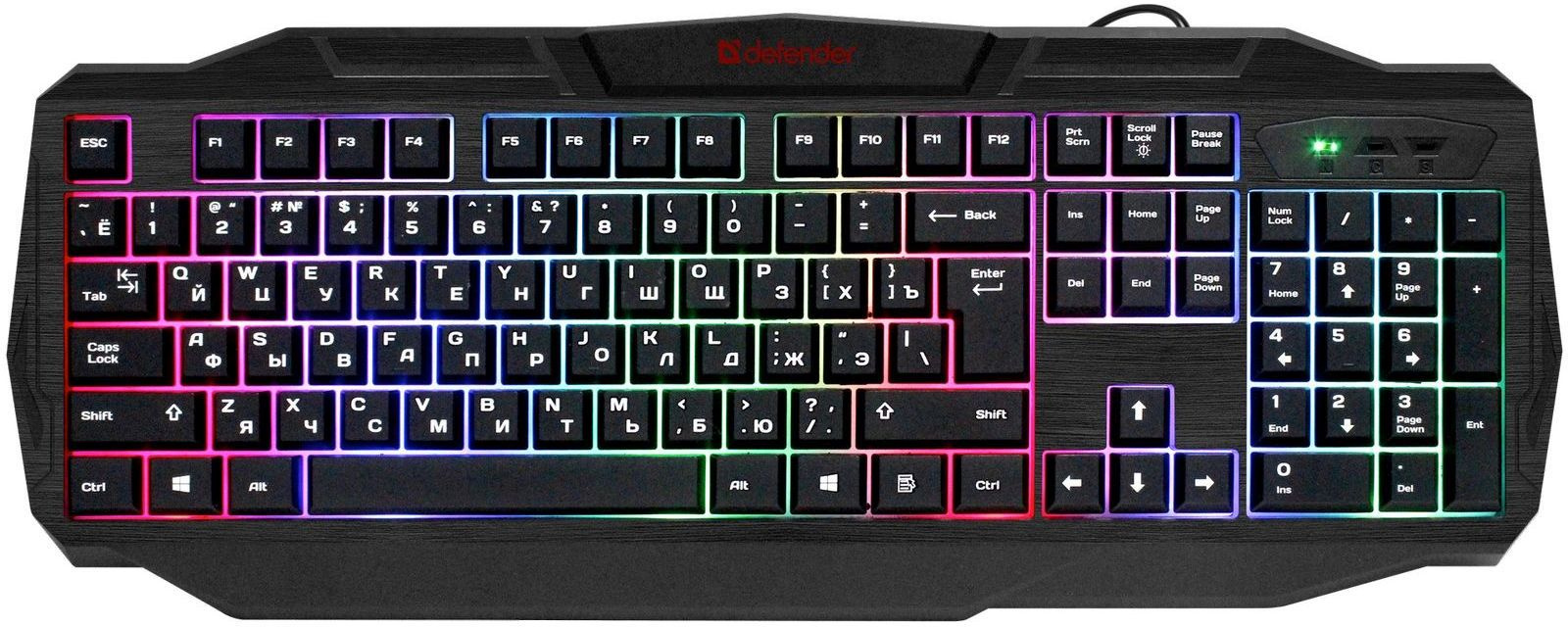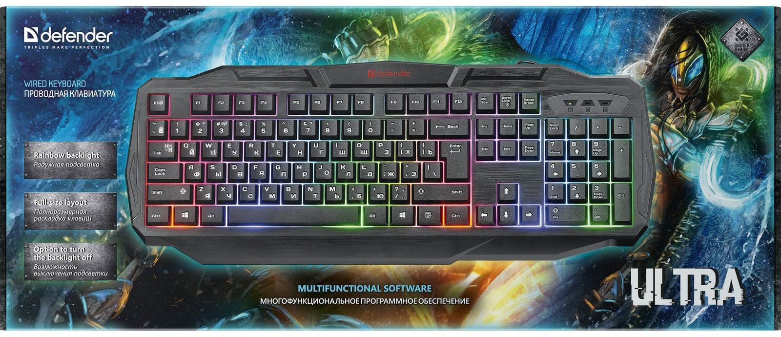 Клавиатура Defender Ultra HB-330L черный USB LED (подставка для запястий)
