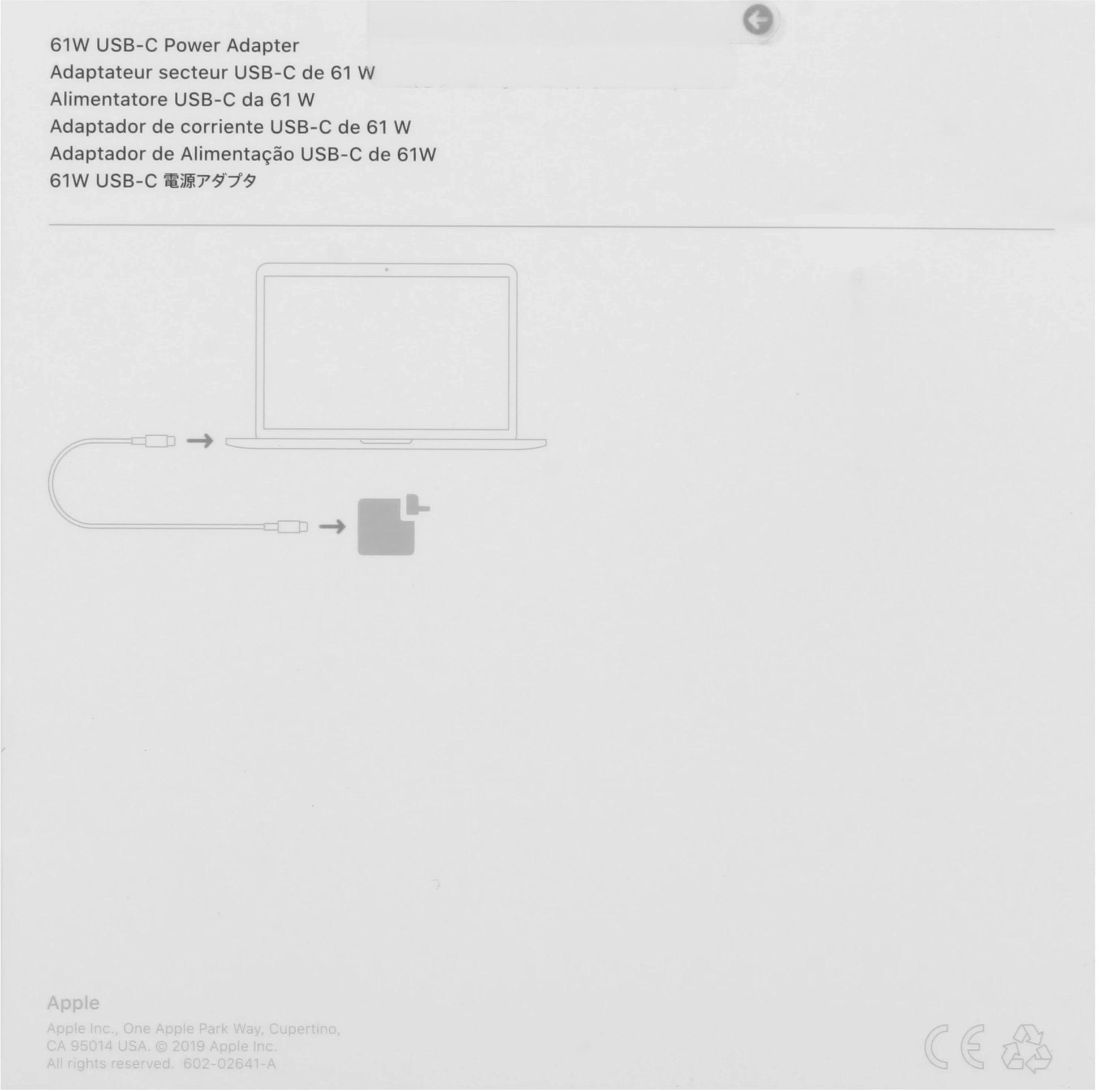 Адаптер питания USB-C мощностью 61 Вт позволяет быстро и эффективно заряжать устройство дома, в офисе или в пути.