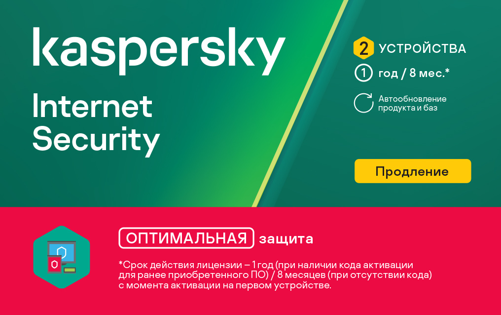 Программное Обеспечение Kaspersky Internet Security. 2-Device 1 year Renewal Card (KL1939ROBFR)
