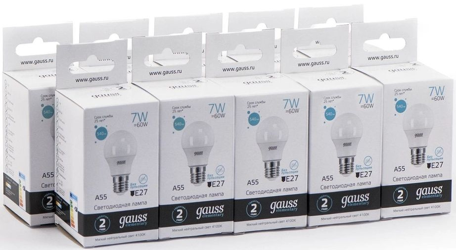 Светодиодная лампа Gauss - безопасный для здоровья и окружающей среды источник света. Она не пульсирует, мгновенно включается, не содержит ртути и имеет больший срок службы, чем лампы накаливания и КЛЛ, экономичнее ламп накаливания до 10 раз.