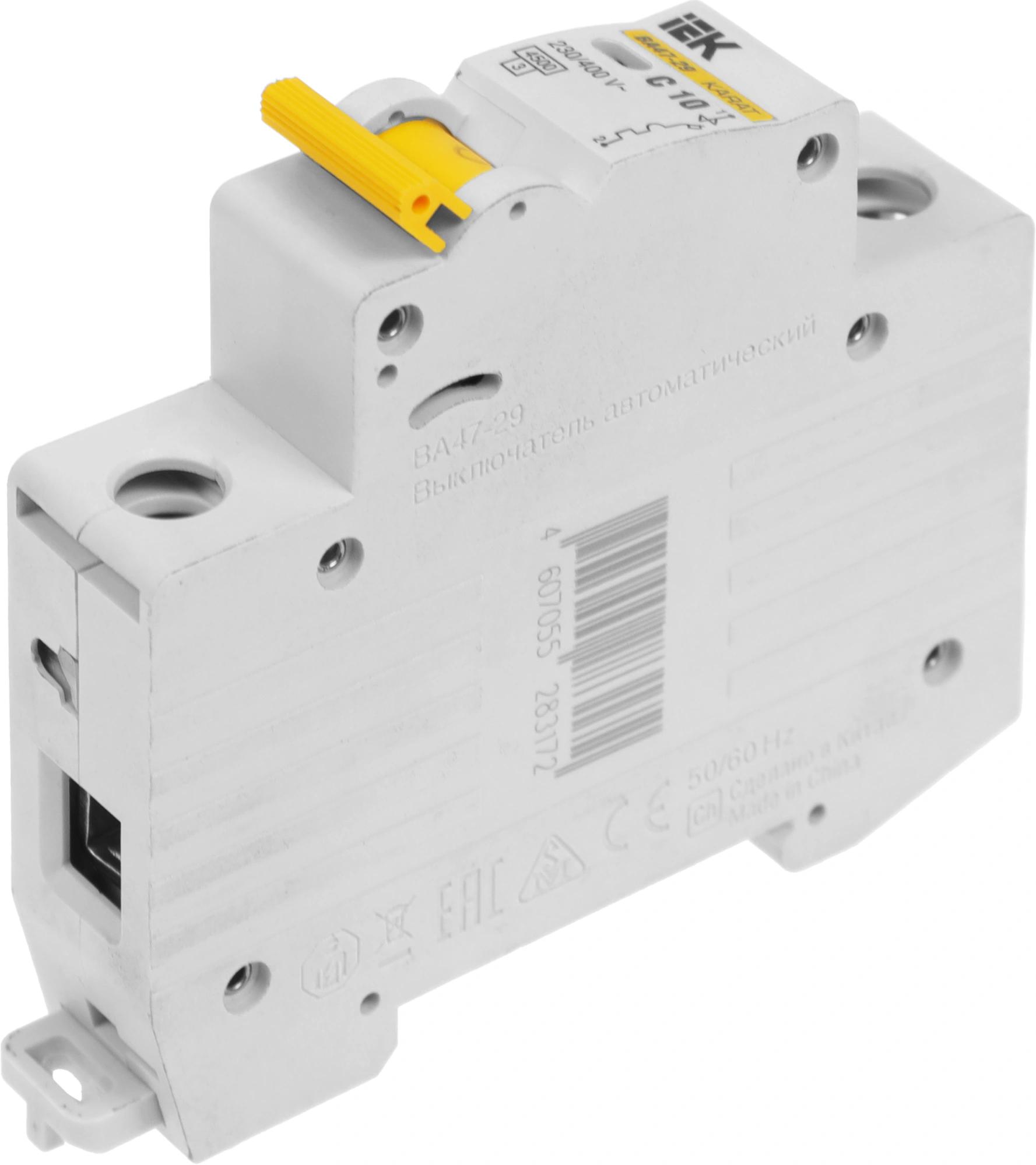 Выключатель автоматический IEK MVA20-1-010-C ВА47-29 10A тип C 4.5kA 1П 230/400В 1мод белый (упак.:1шт)