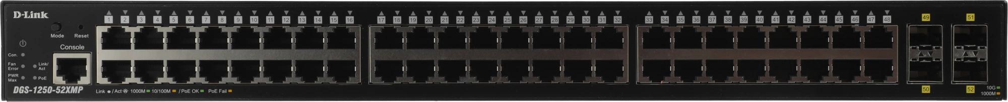 Настраиваемый L2 коммутатор с 48 портами 10/100/1000Base-T и 4 портами 10GBase-X SFP+ (48 портов PoE 802.3af/at, PoE?бюджет 370 Вт)