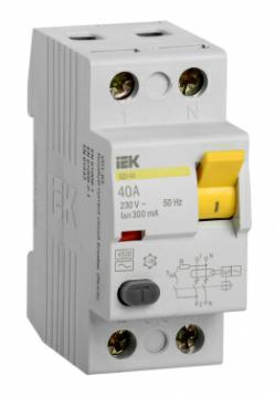 Выключатель дифф.тока УЗО IEK MDV10-2-040-300 ВД1-63 40A 300мА AC 2П 230В 2мод белый (упак.:1шт)