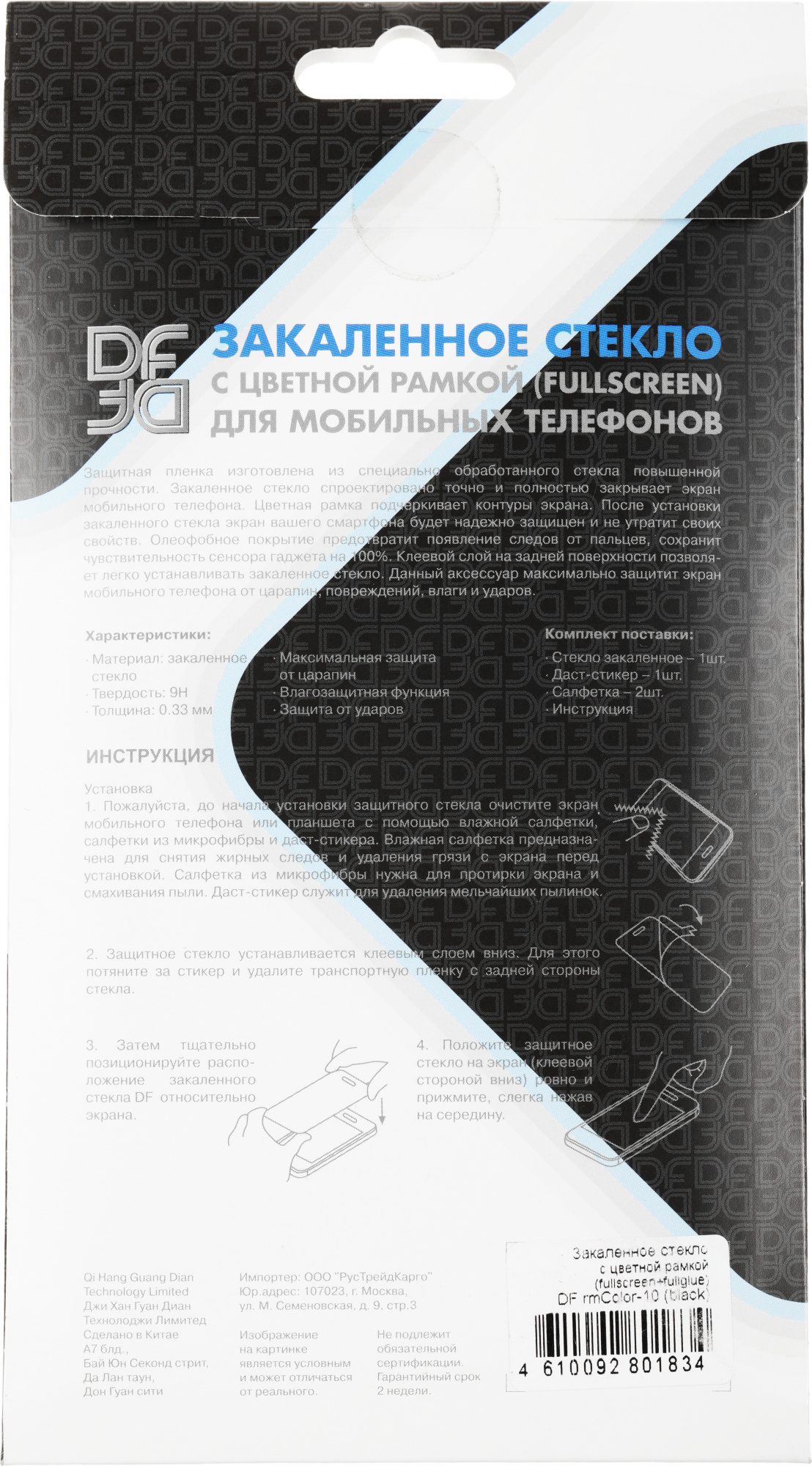 Твёрдость: 9H; Толщина: 0.33 мм; Максимальная защита от царапин; Влагозащитная функция; Защита от ударов.