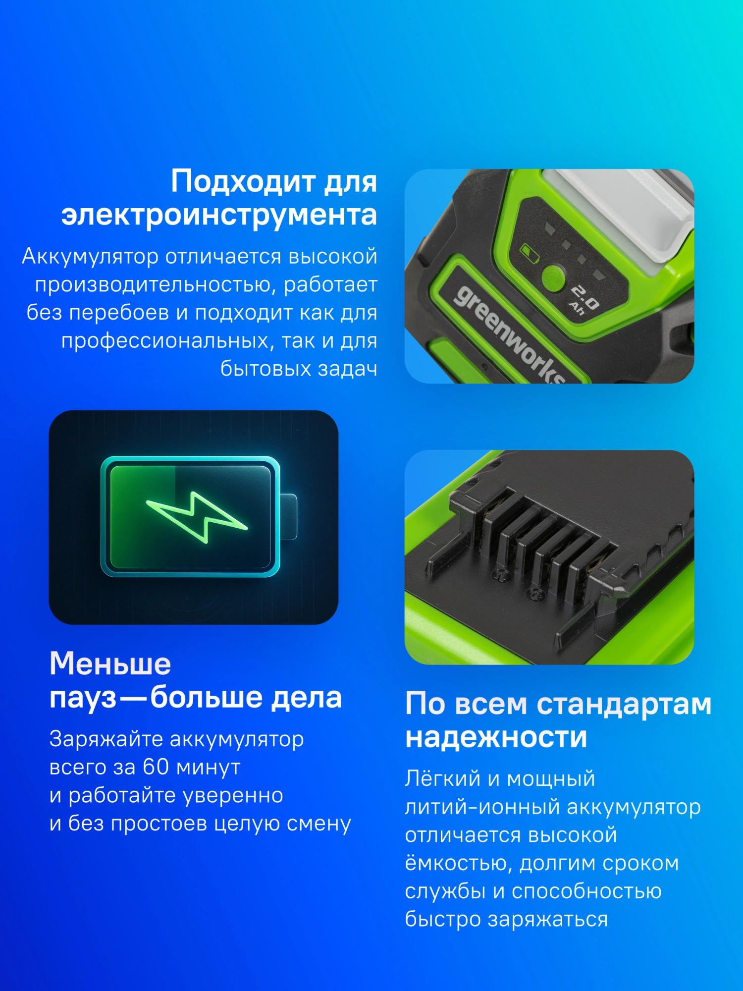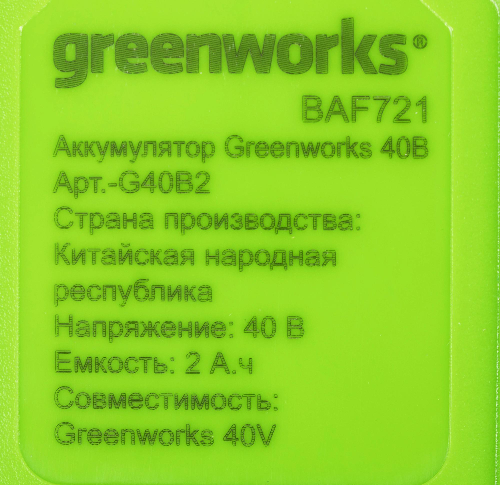 Батарея аккумуляторная Greenworks G40B2 40В 2Ач Li-Ion (2926907)