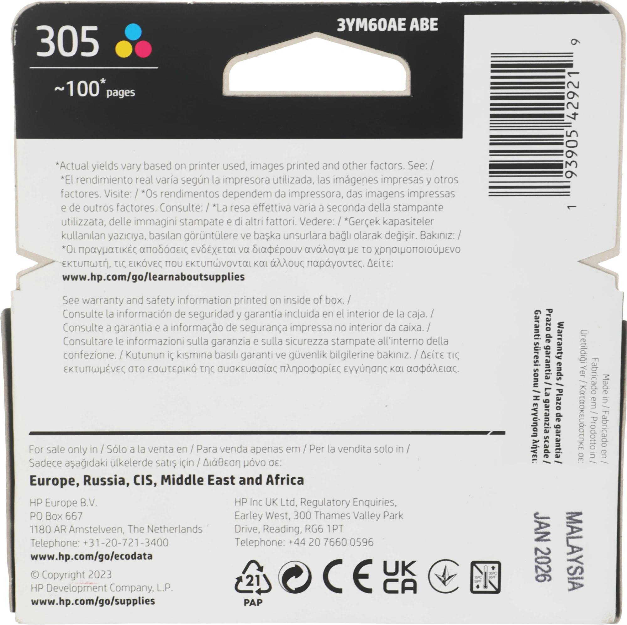 Картридж струйный HP 305 3YM60AE многоцветный печ.гол.в компл. (100стр.) (2мл) для HP DJ 2320/2710/2720