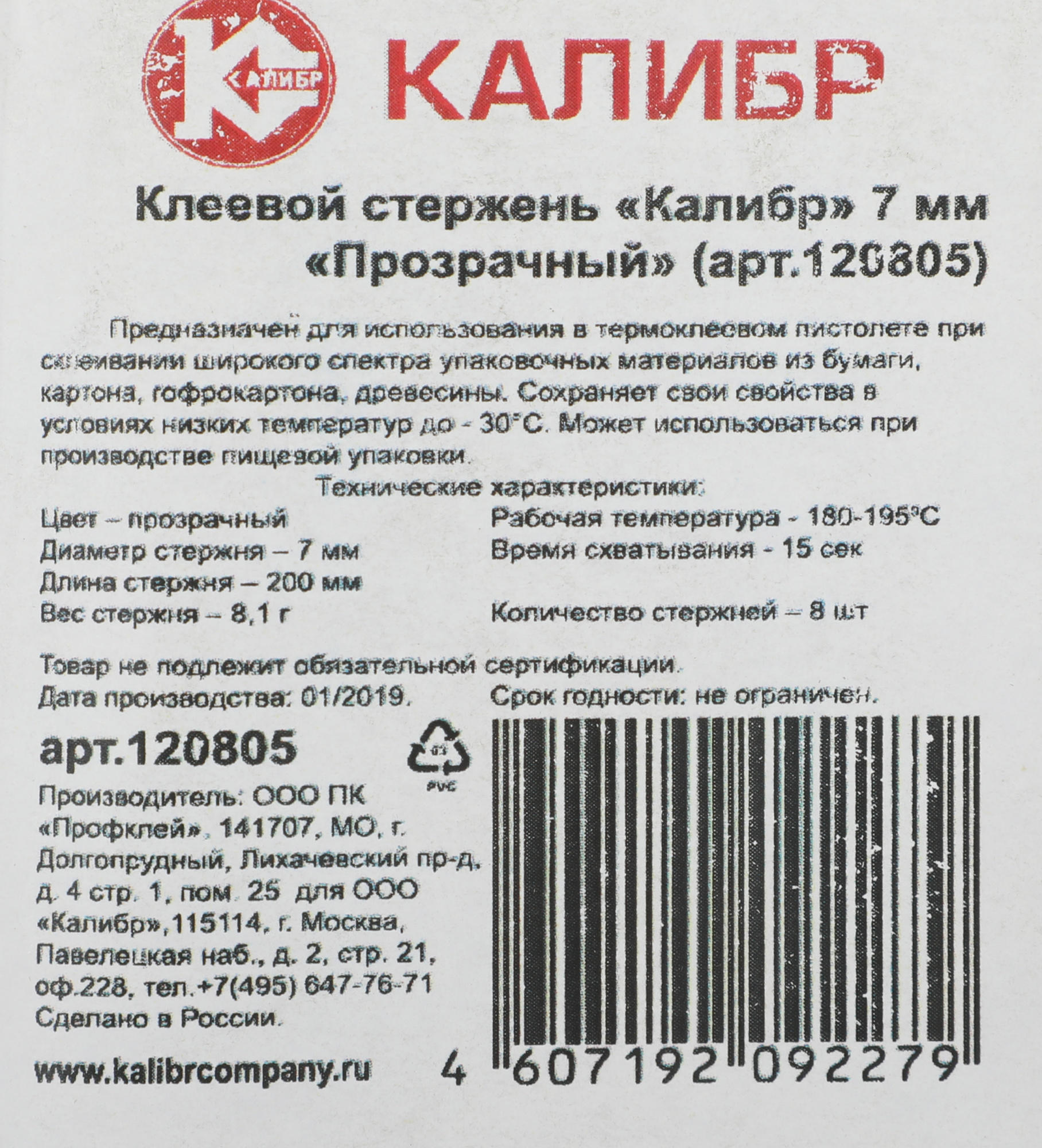 Клеевой стержень Калибр Прозрачный 7 мм предназначен для использования в термоклеевом пистолете при склеивании широкого спектра упаковочных материалов из бумаги, картона, гофрокартона, древесины. Сохраняет свои свойства в условиях низких температур до - 30°С.