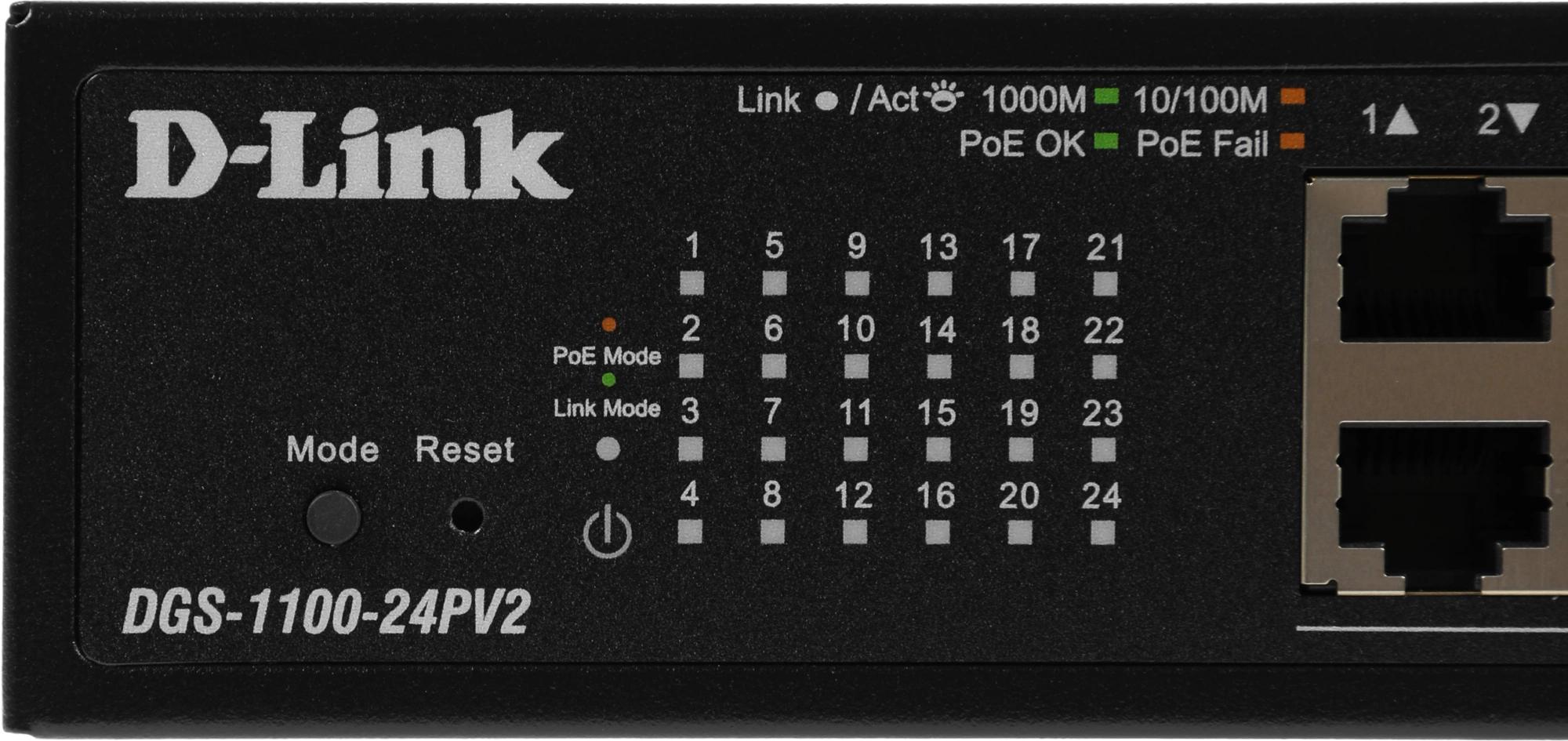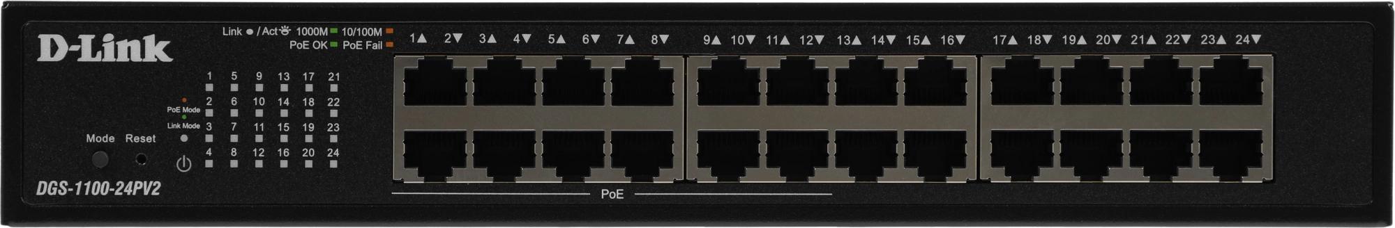 Настраиваемый L2 коммутатор c 24 портами 10/100/1000Base-T (12 портов РоЕ 802.3af/at, PoE-бюджет 100 Вт)