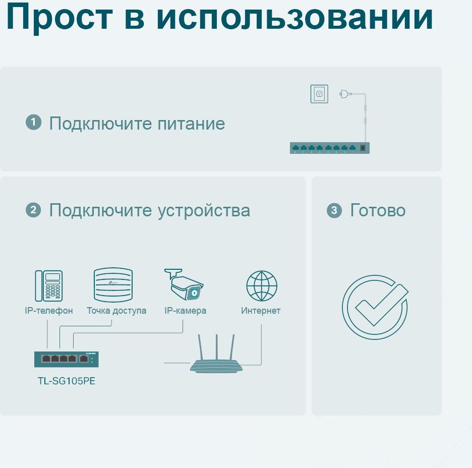 Коммутатор TP-Link TL-SG105PE (L2) 5x1Гбит/с 4PoE+ 65W управляемый