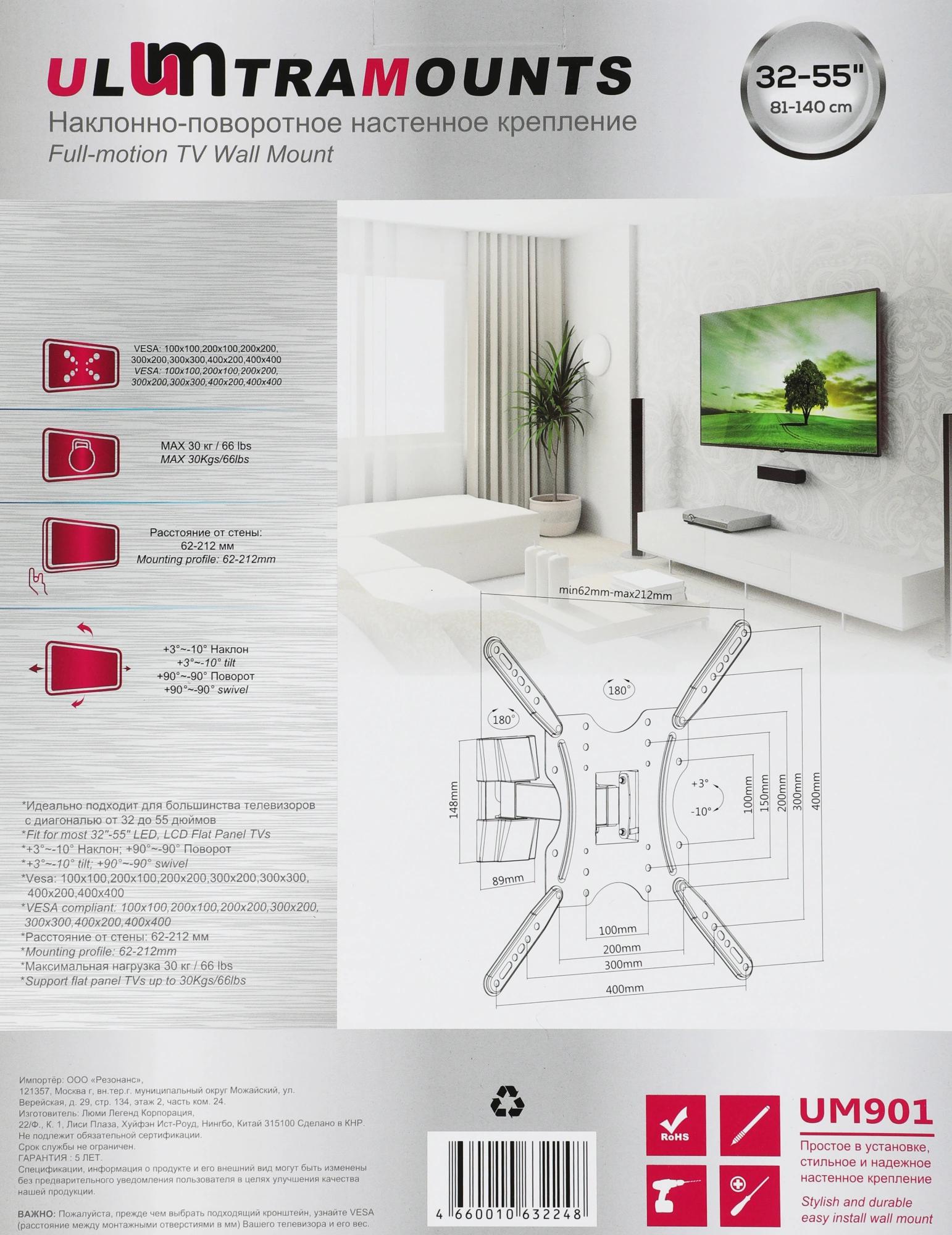 Подходит для телевизоров c диагональю