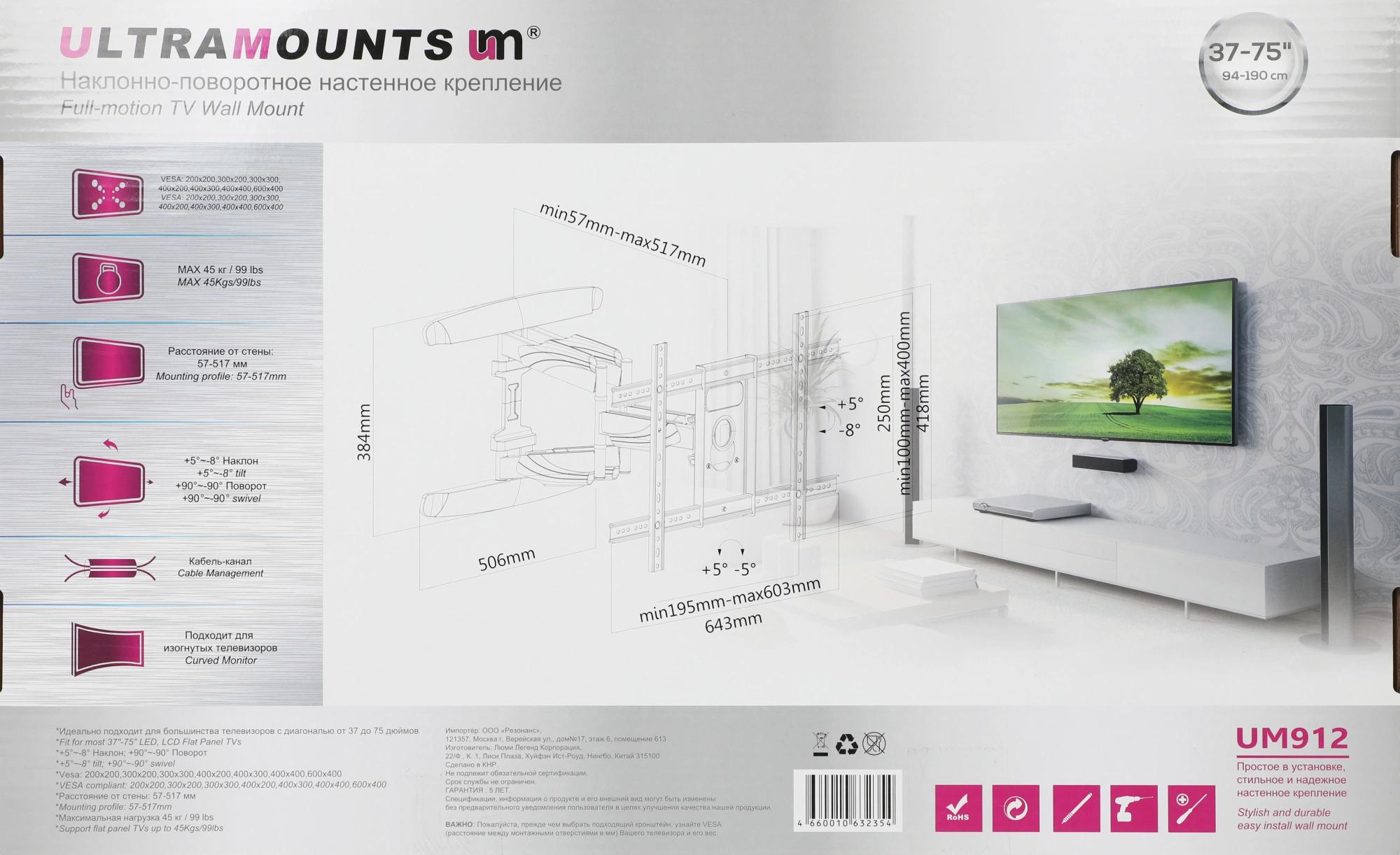 Подходит для телевизоров c диагональю