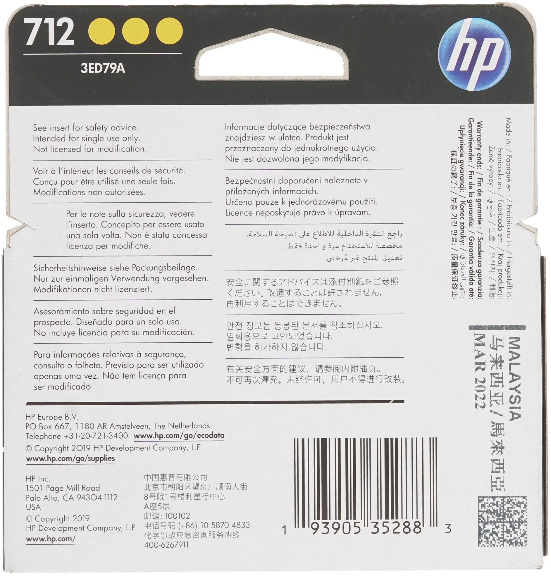 Картридж струйный HP 712 3ED79A желтый тройная упак. (29мл) для HP DJ Т230/630