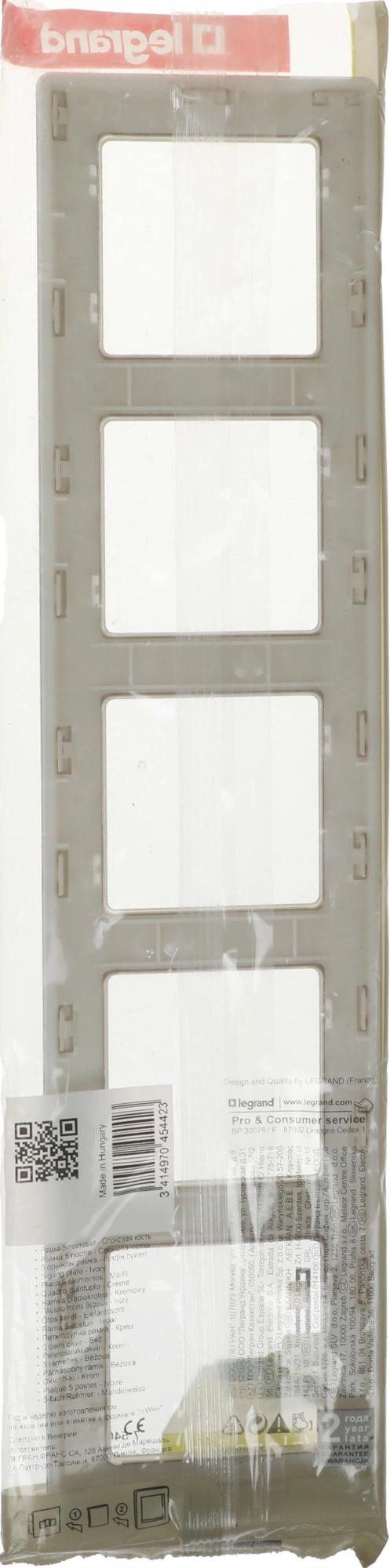 Рамка Legrand Valena Life 754045 накладная 5x горизонтальный монтаж поликарбонат слоновая кость